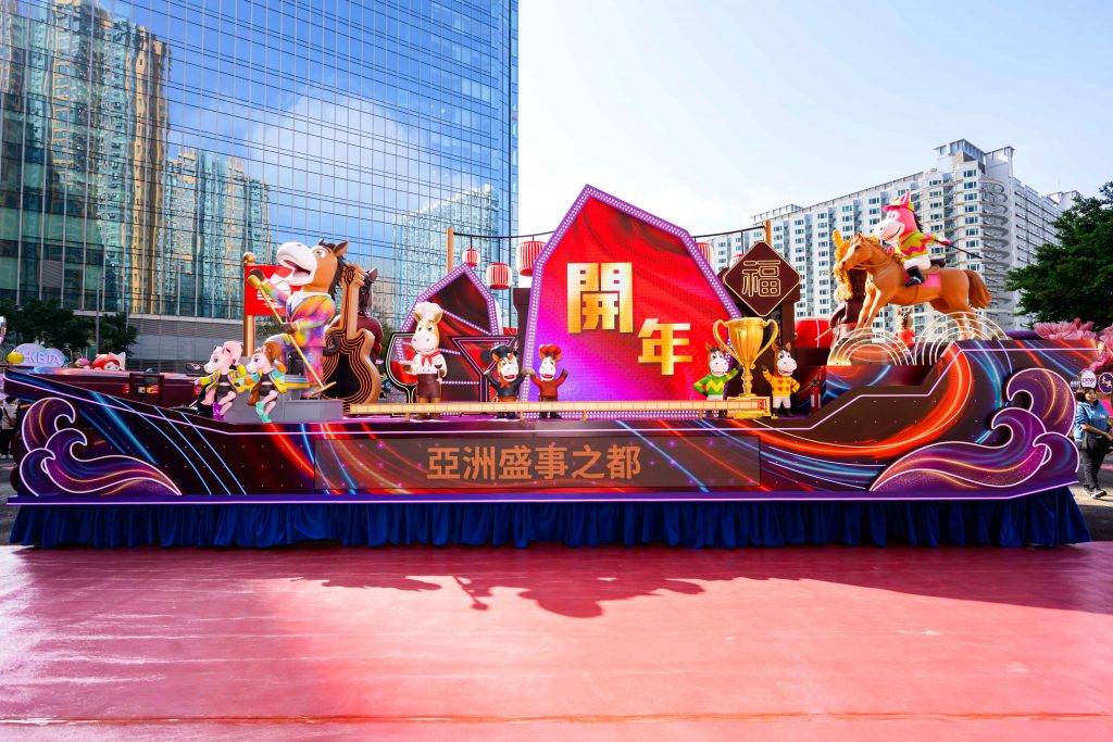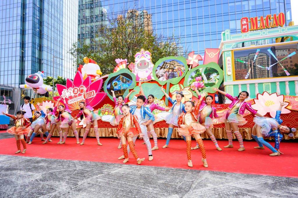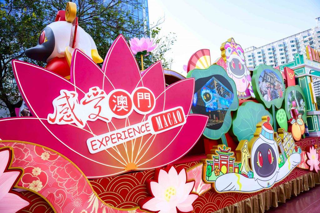 澳門特別行政區政府旅遊局花車以「感受澳門」為主題,將區花荷花同埋以多款賀年造型驚喜亮相嘅吉祥物「麥麥」融合一起。花車除咗展示荷花節、澳門格蘭披治大賽等等嘅澳門嘅節慶盛事,「麥麥」仲帶大家遊歷澳門地標、品嚐澳門美食。而車尾更有仿龍環葡韻建築配合投影,展現澳門獨特華麗魅力。隨行仲有戴上澳門葡撻等造型頭飾嘅兒童舞蹈員帶來爵士舞表演,呈現「麥麥」喺雲端穿梭飛翔嘅一面。
