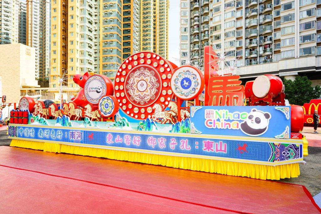 花車將國家文化和旅遊部「歡樂春節」全球品牌標識,融合「吉祥馬」及31個省市及港澳地區文旅宣傳形象,加上車頂向市民旅客拜年嘅祝賀標語同埋車身「你好中國」標識,祝願國家富強、民族振興繁華!