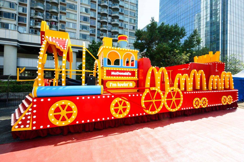 為慶祝品牌50週年,首次參與匯演嘅香港麥當勞,帶嚟以80年代沙田新城市分店為設計靈感嘅經典小火車裝置,配上麥當勞鮮豔嘅紅、黃色,充滿懷舊感;車身同車尾就分別以「M 」標誌及薯條裝飾,加埋經典燈泡點綴,展現童年時大家見到嘅歡樂印象!另外,多位麥當勞前綫員工、管理團隊以及一衆表演者會連同經典麥當勞樂園角色,包括麥當勞叔叔、滑嘟嘟、小飛飛、以及漢堡神偷,帶嚟精彩演出!