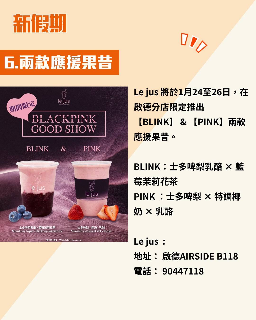 Le jus 將於1月24至26日,在啟德分店限定推出 【BLINK】 & 【PINK】兩款應援果昔。
