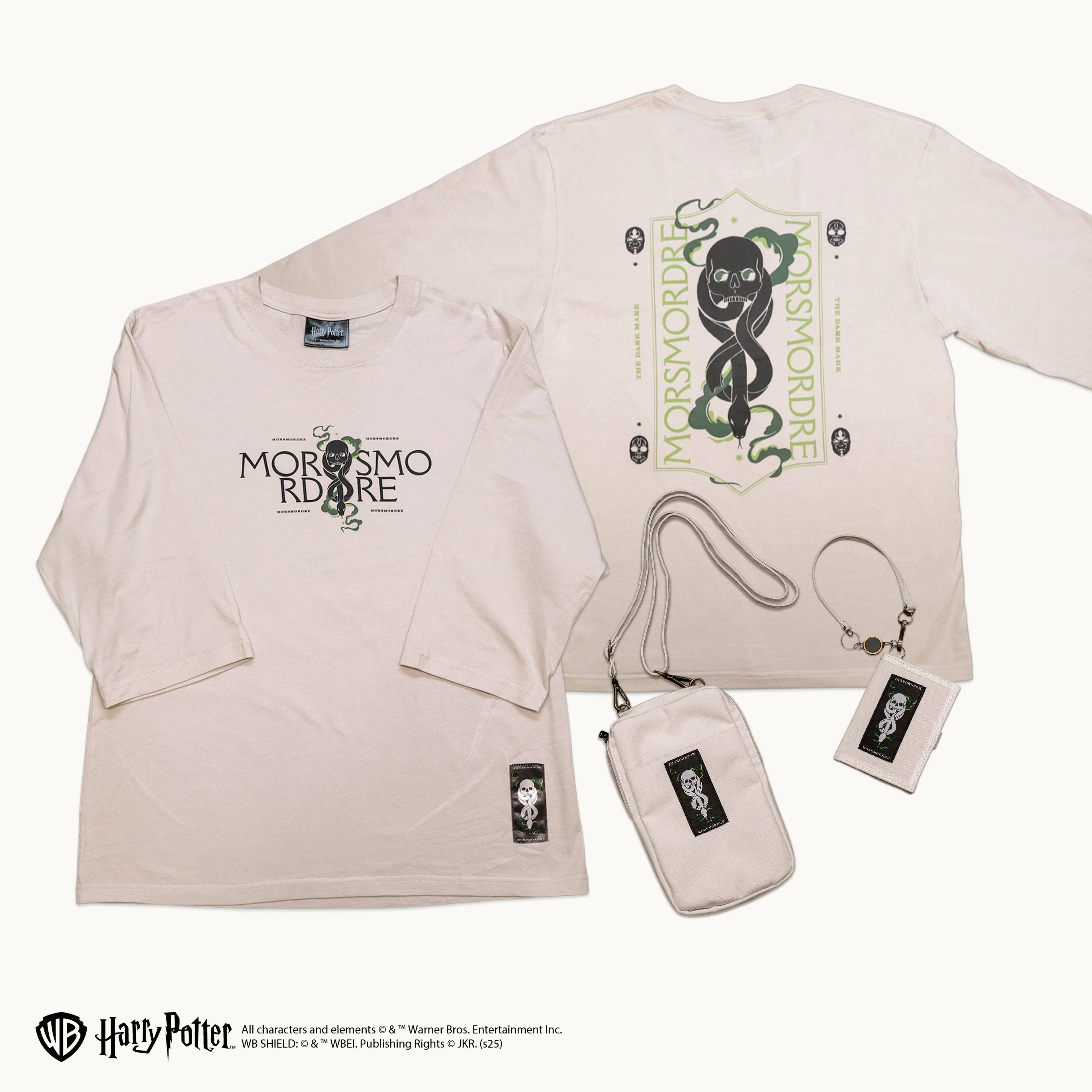 10月份期間限定推出3款獨家商品,包括卡片套連掛繩、兩用側腰袋及印花T裇,以 「The Dark Mark」 作為設計靈感,結合骷髏頭和蛇形舌頭兩個元素構成的圖案,並印有「MORSMORDRE」 咒語,簡約而實用的設計中帶著暗黑氣息的神秘魅力。