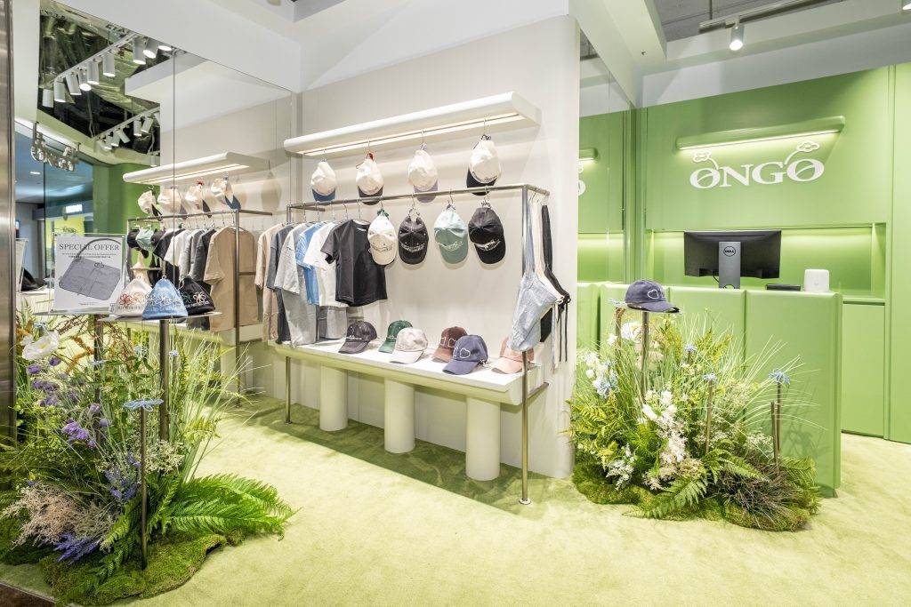 ONGO 已於11月7日進駐潮流地標旺角朗豪坊,開設香港首間期間限定店,店鋪主要採用綠色和白色色調,配合品牌標誌性的花結設計,特意選用自然的草地及花卉作裝飾。簡潔明亮的佈局營造出舒適的氛圍。