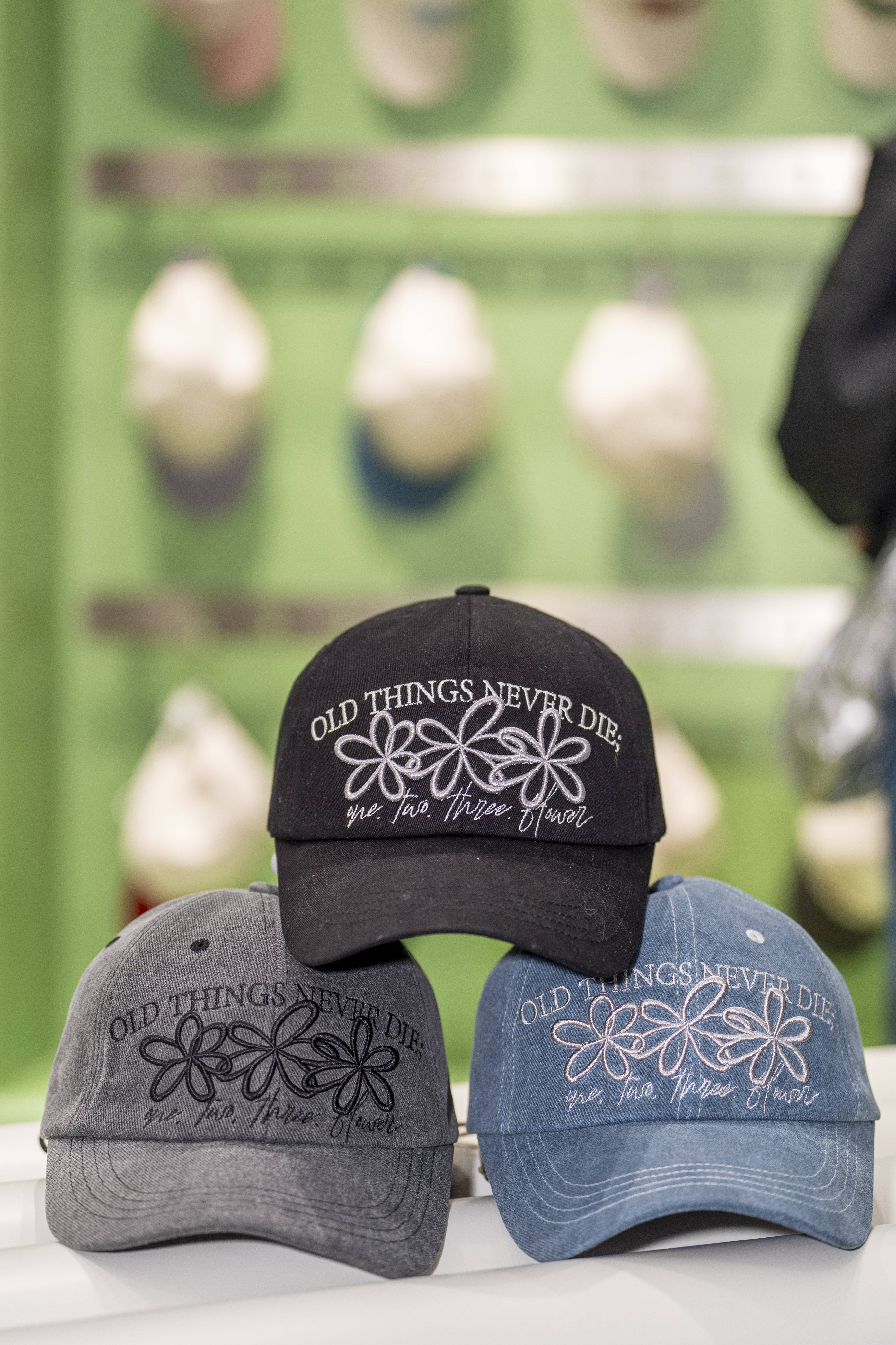 ONGO 棒球帽的正面均繡上簡潔「Old Things Never Die」字體或花卉圖案,背後則綴上具有韓國傳統文化特色的花卉結繩設計,完美地將傳統美學與現代時尚互相融合,背後的結繩設計更能成為造型中的亮點,瞬間提升造型感。棒球帽後方搭配花朵造型的結飾調節帶,能自由調整適合自己的寬度,大帽簷設計更能完美修飾面型。棒球帽設有多款圖案設計及顏色供大家選擇,多個熱門款式包括經典花結繩「FLOWER KNOT CAP」、三朵花結繩「ONE, TWO, THREE, FLOWER KNOT CAP」以及雙愛心圖案「DOUBLE HEART KNOT CAP」等等,能滿足大家不同的風格。另外,品牌亦沿用品牌具標誌性的花卉結繩設計及「Old Things Never Die」字體,陸續注入一系列的服飾跟袋子,讓大家拼搭出不同的造型。