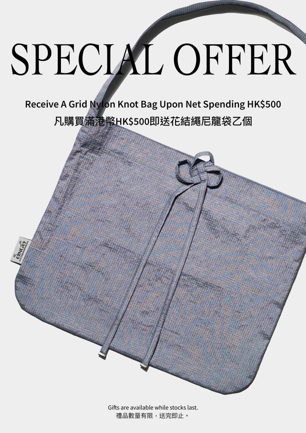 為慶祝 ONGO 期間限定店的開幕,凡購買滿港幣 HK$500,即免費送花結繩尼龍袋乙個,數量有限,送完即止!