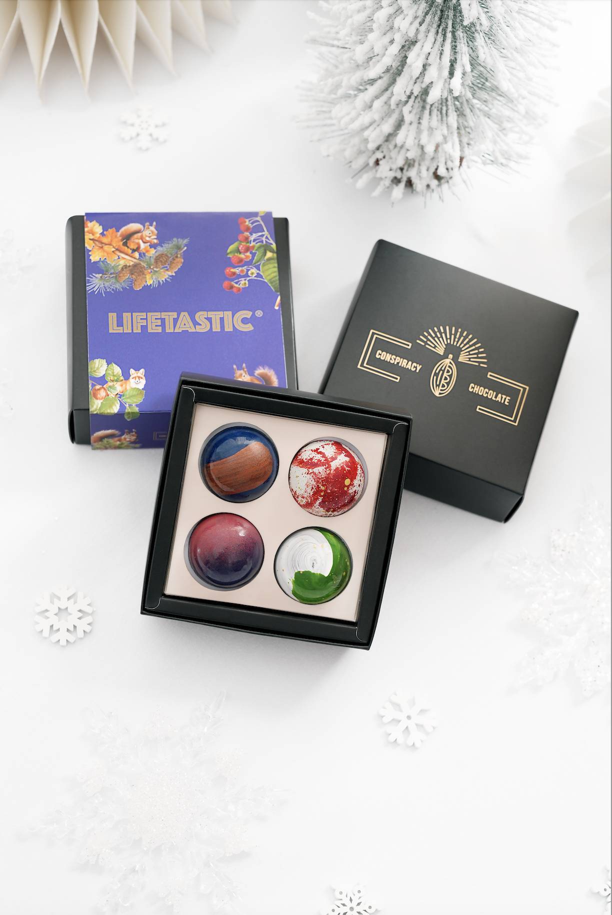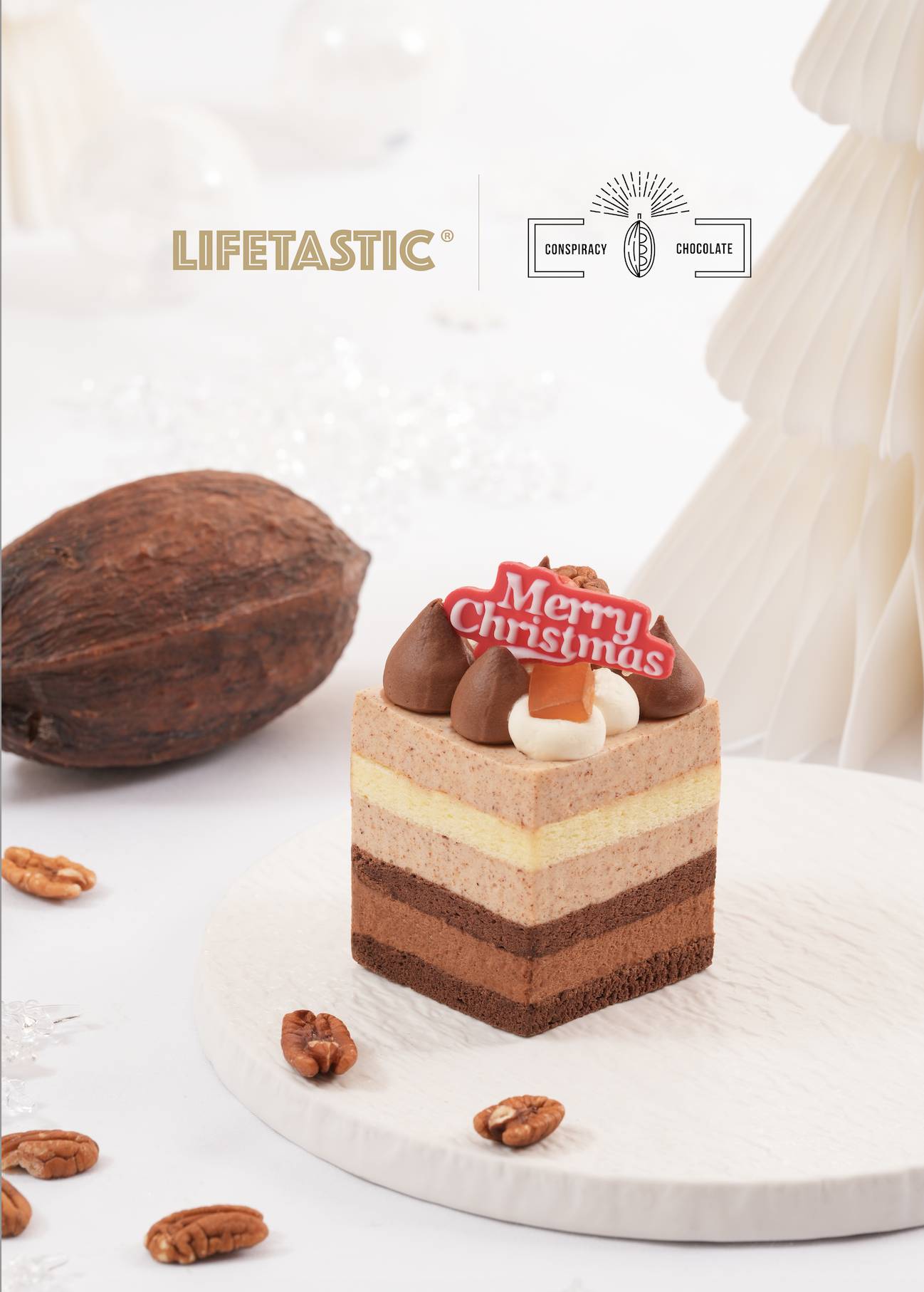 人氣健康甜品品牌 LIFETASTIC 首度聯乘本地 bean-to-bar 精品朱古力品牌 Conspiracy Chocolate,以「Layers of Joy」為主題,推出限定三大聖誕蛋糕,推介全新 LIFETASTIC X Conspiracy 聖誕朱古力核桃蛋糕,餡料豐富,味道豐富又平衡。今次聯乘特別推出 PETISSERIE 寵物友善限定版,例如「聖誕朱古力核桃小蛋糕(狗狗/貓貓版),等毛孩都可以品嚐「安全配方甜點」一同慶祝。另外,仲有超精美送禮系列:音樂盒雜錦牛油曲奇禮罐、限量版手工朱古力禮盒,仲有聖誕蛋糕禮券套裝,交換禮物啱晒!