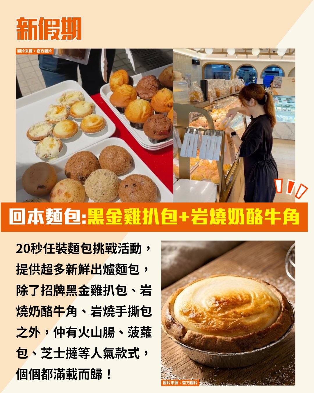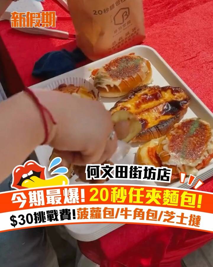 20秒任裝麵包挑戰活動,提供超多新鮮出爐麵包,除了招牌黑金雞扒包、岩燒奶酪牛角、岩燒手撕包之外,仲有火山腸、菠蘿包、芝士撻等人氣款式,個個都滿載而歸!