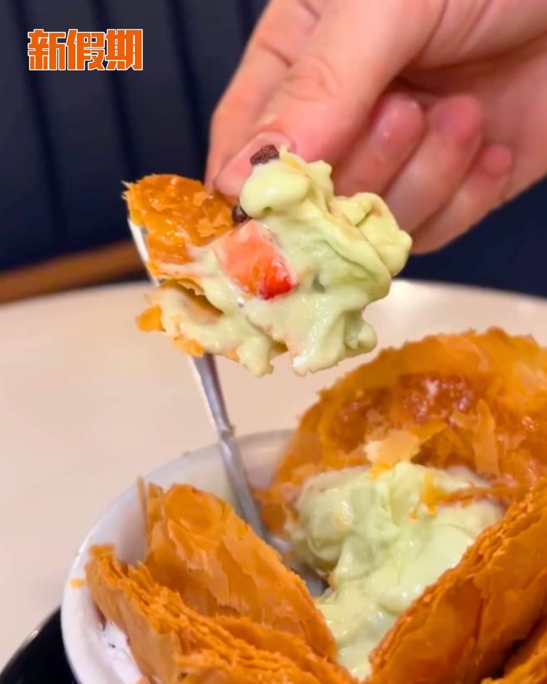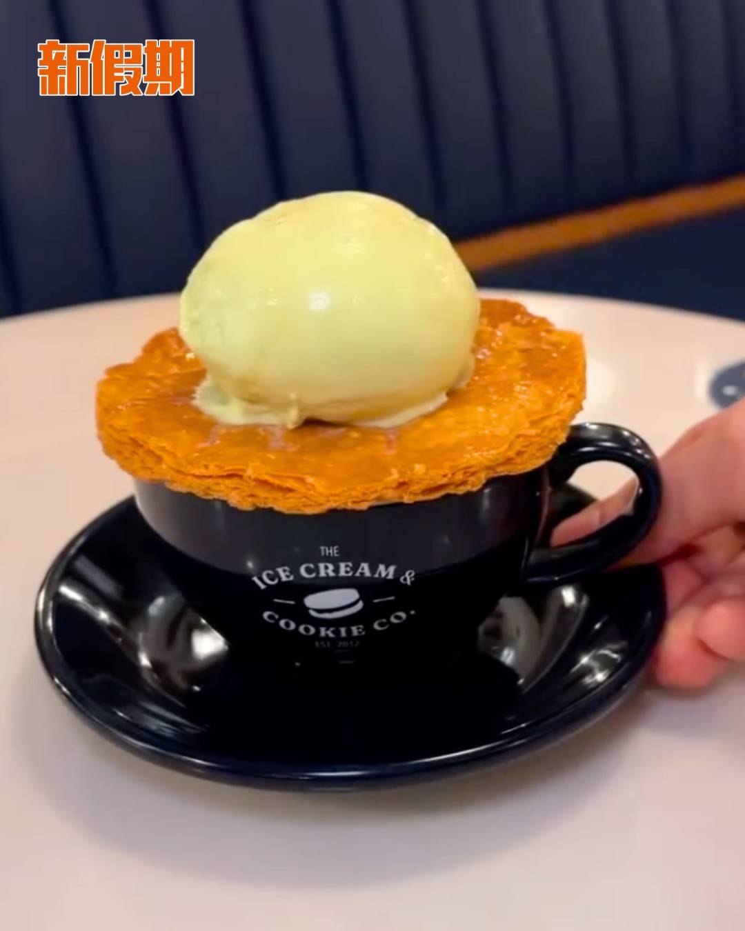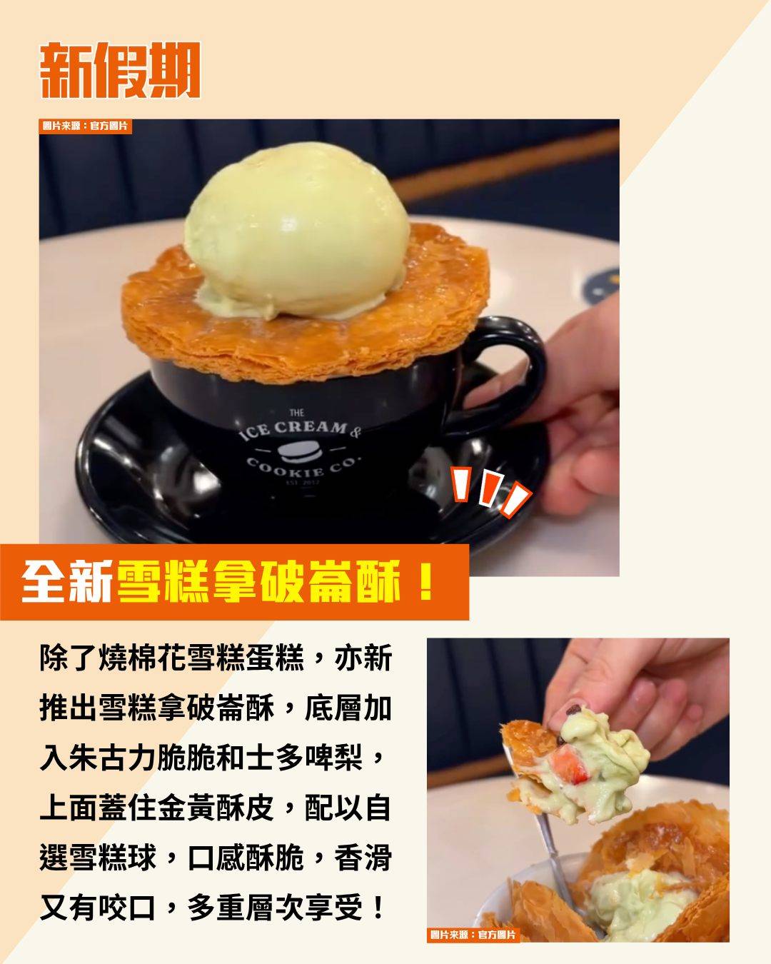 除了燒棉花雪糕蛋糕,亦新推出雪糕拿破崙酥,底層加入朱古力脆脆和士多啤梨,上面蓋住金黃酥皮,配以自選雪糕球,口感酥脆,香滑又有咬口,多重層次享受!