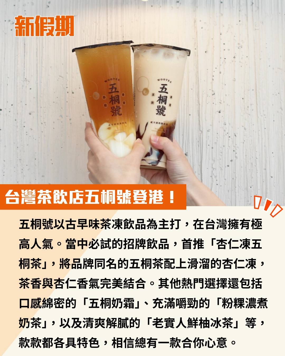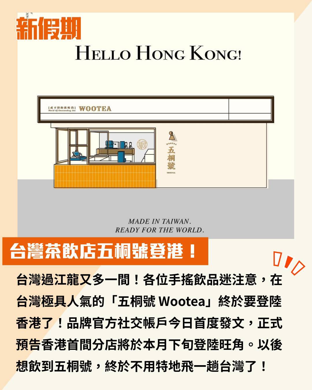 台灣過江龍又多一間!各位手搖飲品迷注意,在台灣極具人氣的「五桐號 Wootea」終於要登陸香港了!品牌官方社交帳戶今日首度發文,正式預告香港首間分店將於本月下旬登陸旺角。以後想飲到五桐號,終於不用特地飛一趟台灣了!
