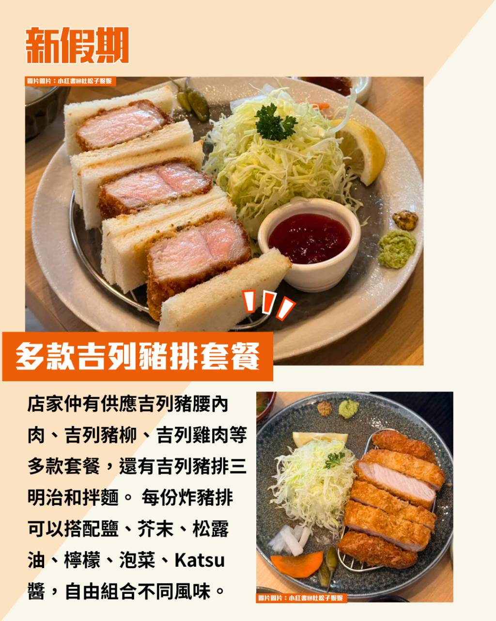店家仲有供應吉列豬腰內肉、吉列豬柳、吉列雞肉等多款套餐,還有吉列豬排三明治和拌麵。 每份炸豬排可以搭配鹽、芥末、松露油、檸檬、泡菜、Katsu醬,自由組合不同風味。