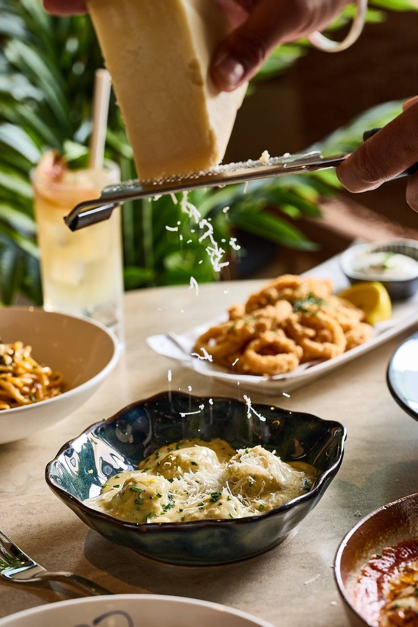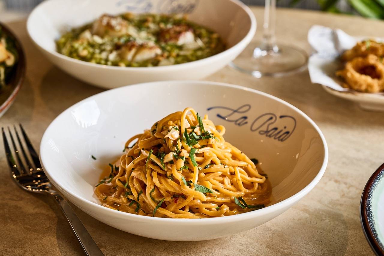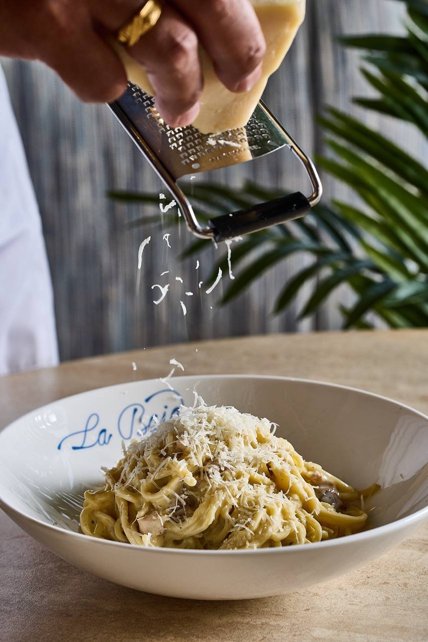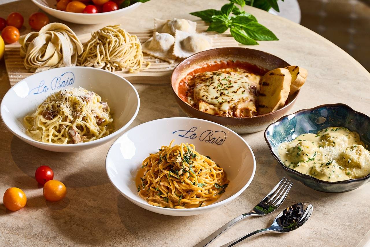 La Baia提供平易近人的意式美食,包括每日製作的手工意粉薄餅,及多款可供分享的精選菜式。滋味開胃前菜包括:脆炸魷魚圈,配檸檬香蒜蛋黃醬($128);三文魚他他配牛油果及酸汁醃製茴香($158);炙燒羅馬生菜沙律,配鯷魚及香脆麵包粒($158);及非常適合佐酒的拼盤精選 ($168)。餐廳每日新鮮自家製手工意大利麵食,推介海膽蒜香扁意粉配油封香蒜($158),其豐厚綿密的惹味海膽忌廉醬與油封香蒜完美結合;帶有微辣風味的白酒香蒜大蜆配辣肉腸墨魚汁扁意粉($158);經典卡邦尼意粉($148)則以鹽漬蛋黃、風乾豬面頰肉及意大利Pecorino芝士融合,簡單惹味;牛肉醬千層麵配上Bechamel白醬($168),慢煮牛肉香氣滿溢。還有慢煮牛尾意大利餃子($168),自家製手工餃子皮以慢煮炖牛尾為餡,配上香濃黑松露牛油,讓人欲罷不能。