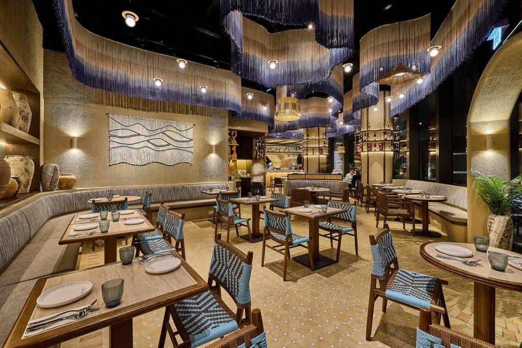 La Baia 位於啟德體育園的「美食灣」Dining Cove,餐廳室內用餐區設有70個座位,提供舒適的用餐空間, 是前往啟德體育場觀賞演唱會或體育賽事前後的美食之選。 餐廳在室內設計上,通過自然曲線的運用, 充分展現海岸度假的悠然氛圍。 主餐區以大自然海洋色系襯托靛藍色為設計主調, 巧妙運用優雅橡木及天然纖維布藝裝飾, 營造出自然且流暢的美感空間。砂石牆與懷舊地磚相輔相成, 優雅的石材餐桌搭配手工竹編屏風,營造出樸實迷人的氣息。 啡藍色間條紋手工織紋的木椅配搭舒適布藝梳化, 充滿活力的盆栽植物點綴,彼此恰如其分地融合在一起。