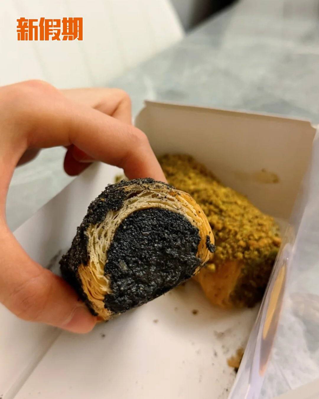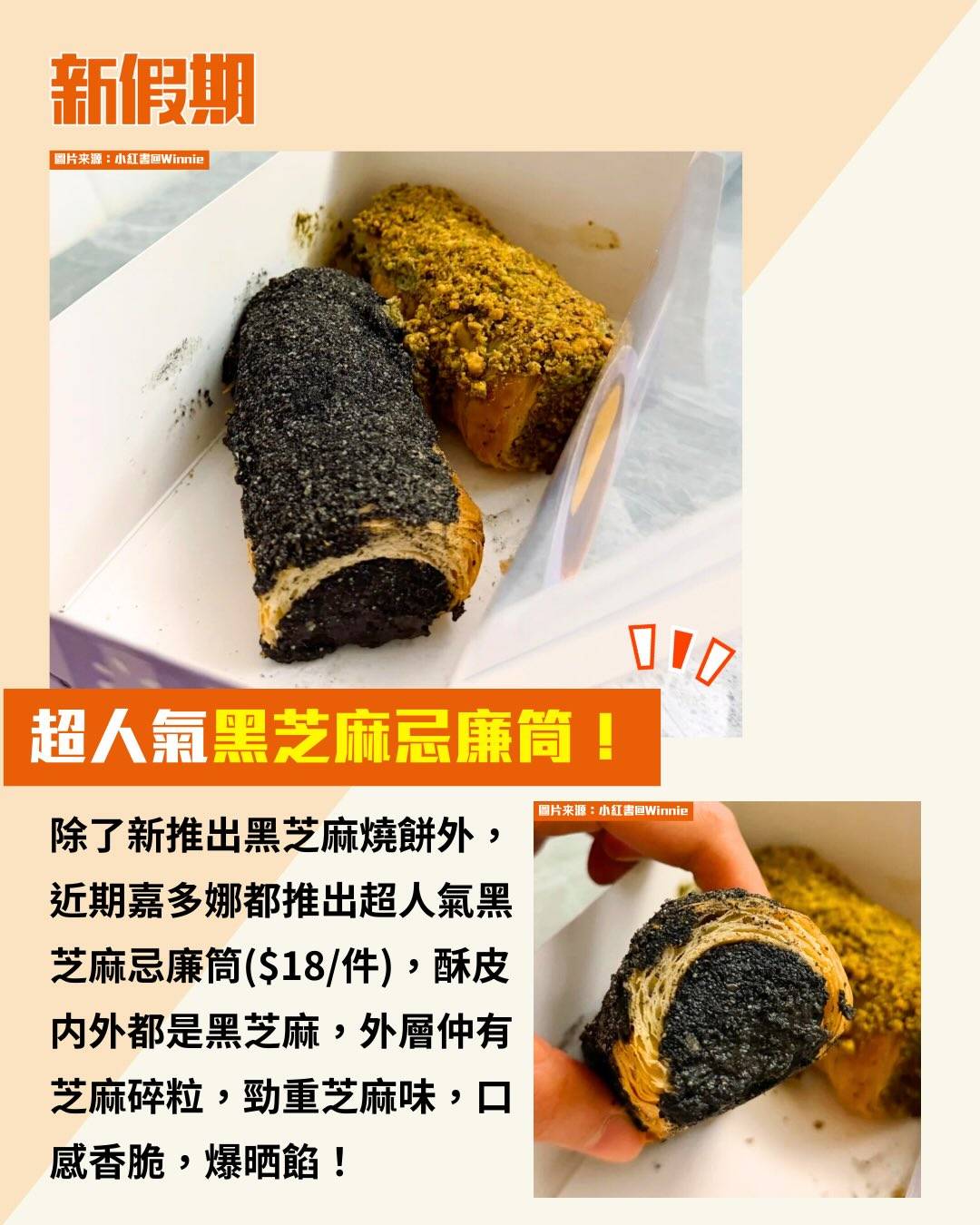 除了新推出黑芝麻燒餅外,近期嘉多娜都推出超人氣黑芝麻忌廉筒($18/件),酥皮内外都是黑芝麻,外層仲有芝麻碎粒,勁重芝麻味,口感香脆,爆晒餡!