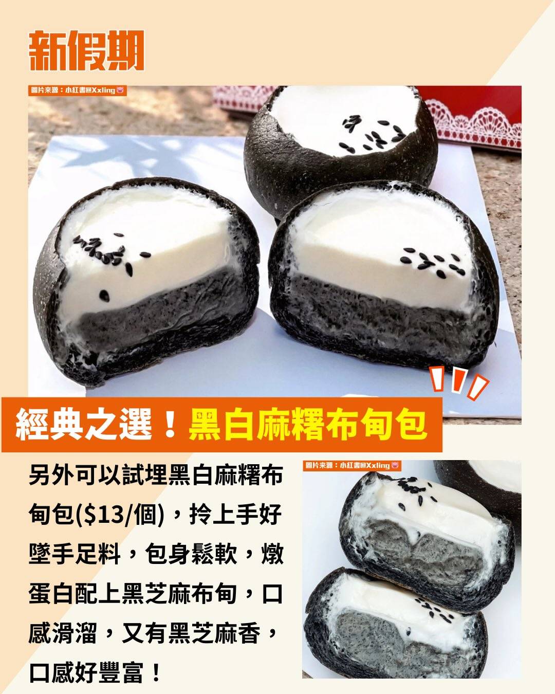 另外可以試埋黑白麻糬布甸包($13/個),拎上手好墜手足料,包身鬆軟,燉蛋白配上黑芝麻布甸,口感滑溜,又有黑芝麻香,口感好豐富!