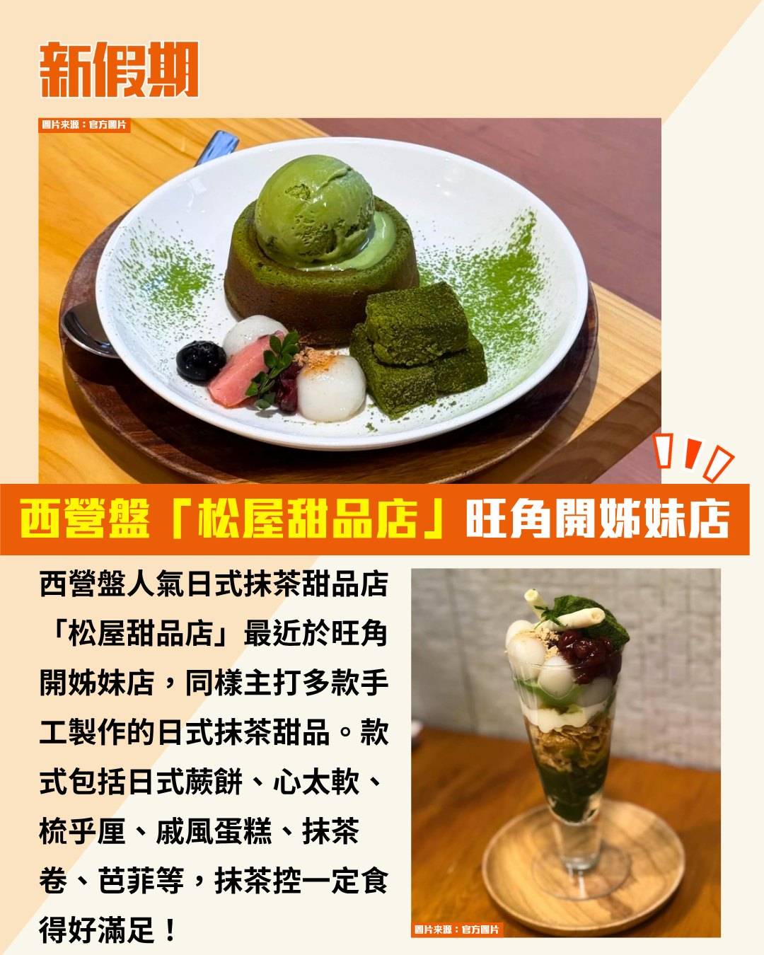 西營盤人氣日式抹茶甜品店「松屋甜品店」最近於旺角開姊妹店,同樣主打多款手工製作的日式抹茶甜品。款式包括日式蕨餅、心太軟、梳乎厘、戚風蛋糕、抹茶卷、芭菲等,抹茶控一定食得好滿足!
