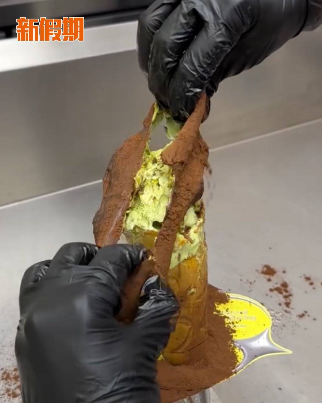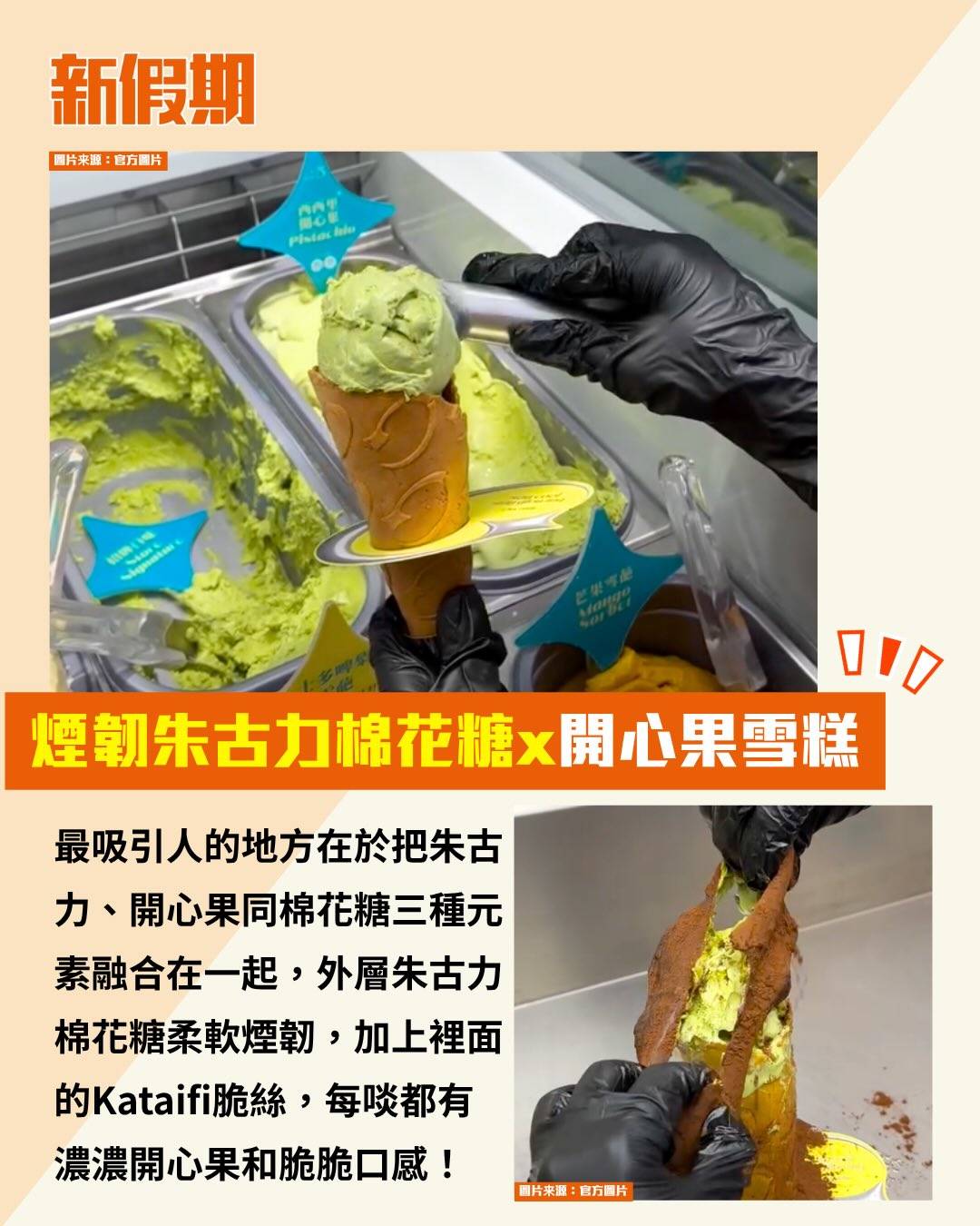杜拜朱古力棉花糖雪糕最吸引人的地方在於把朱古力、開心果同棉花糖三種元素融合在一起,外層朱古力棉花糖柔軟煙韌,加上裡面的Kataifi脆絲,每啖都有濃濃開心果和脆脆口感!