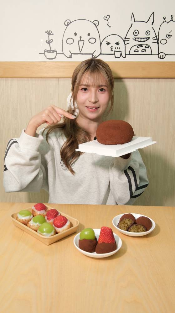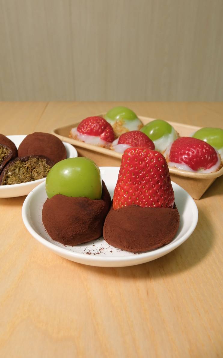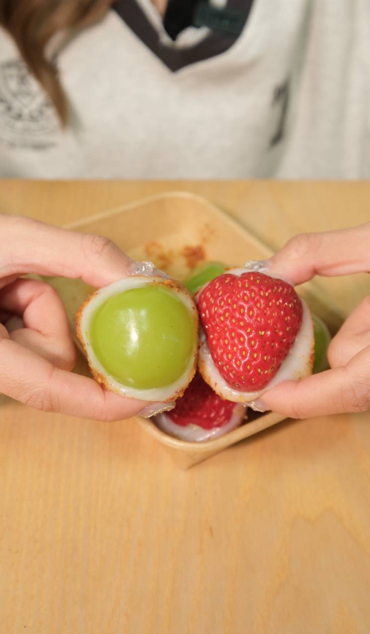 除咗巨大化,杜拜朱古力麻糬亦有迷你版及士多啤梨和香印提子口味,一口一啖,濃郁開心果味,口感香脆!小店仲有供應台灣夜市水果麻糬和鮮奶麻糬士多啤梨雪酪,前者每粒都包住原粒士多啤梨及香印提子,加埋自家製芋泥和焦糖花生糖,果味香濃,口感爽甜;後者士多啤梨雪酪清新香甜,麻糬拉絲軟Q綿滑。甜品迷快啲嚟試齊佢!