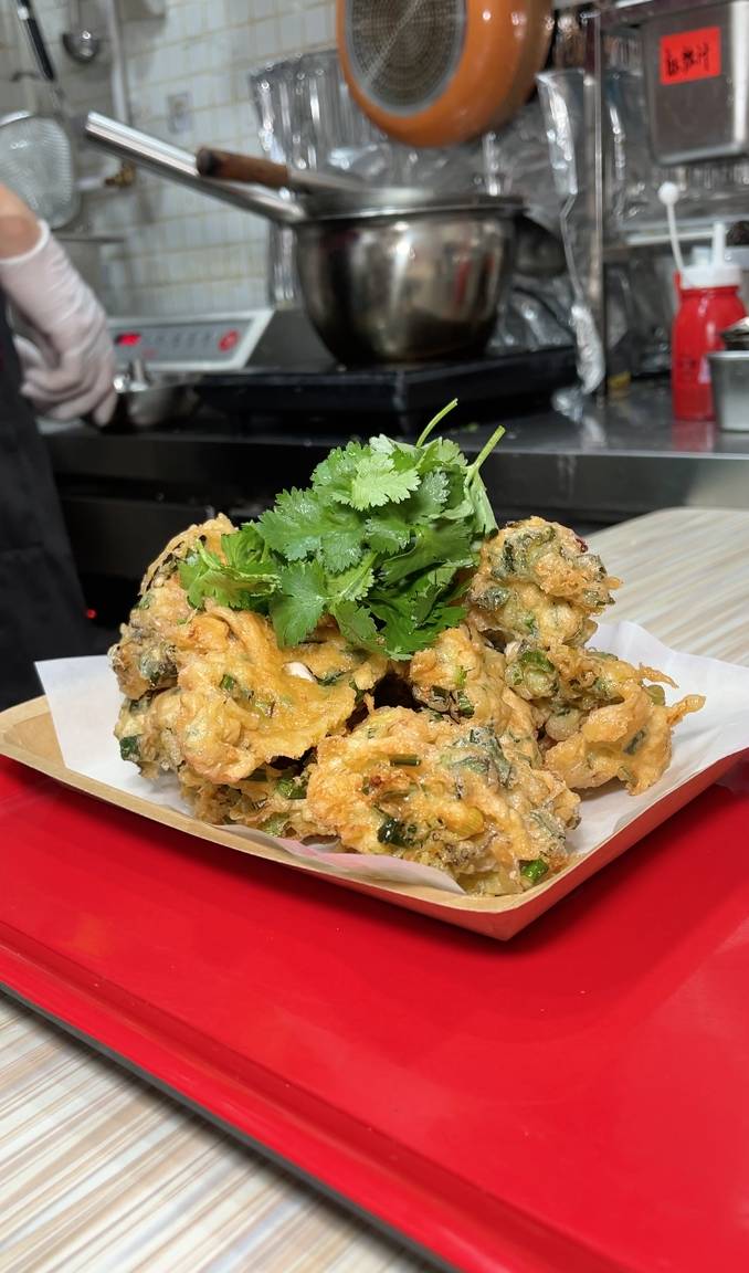 深水埗西九龍中心8樓美食廣場又有新餐廳開幕,這間蠔仔專門店「港蠔」,由入行超過30年前莆田大廚主理,主打多款蠔仔主題美食,全部都是手工製。招牌必試即叫即炸炸蠔餅($88),蠔仔每日街市新鮮購入,用一隻雞蛋同鴨蛋,滾油落鑊再炸到金黃色,份量超多,咬落酥脆香口,又有蠔仔嘅鮮味,加埋特製魚露醬汁 ,十分美味!鍾意食蠔仔嘅朋友快啲去試吓啦!