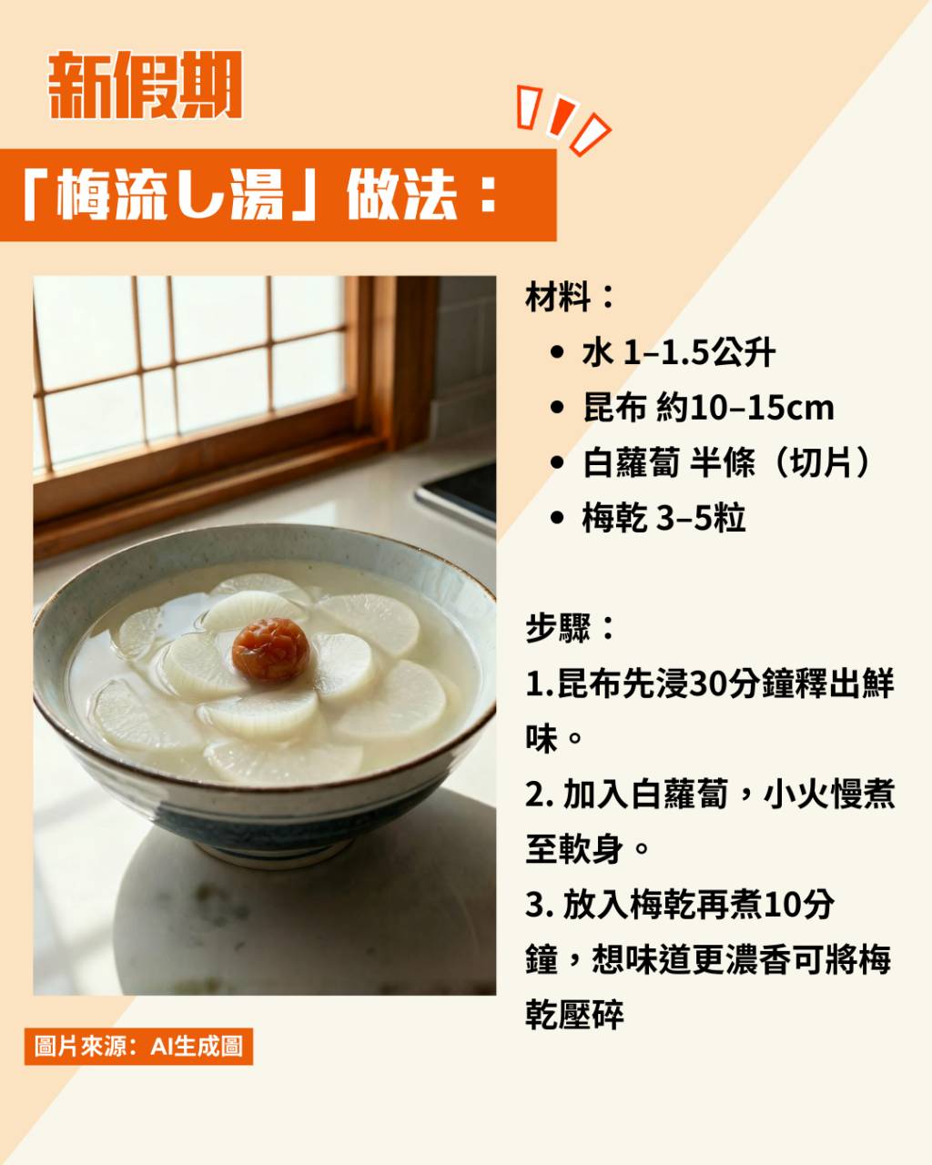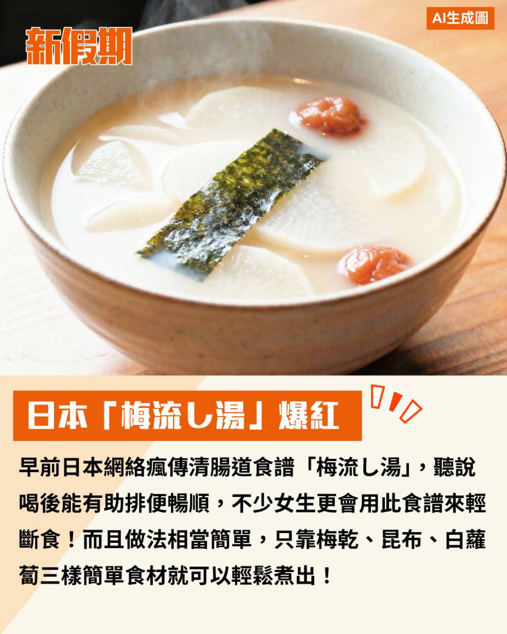 早前日本網絡瘋傳清腸道食譜「梅流し湯」,聽說喝後能有助排便暢順,不少女生更會用此食譜來輕斷食!而且做法相當簡單,只靠梅乾、昆布、白蘿蔔三樣簡單食材就可以輕鬆煮出!