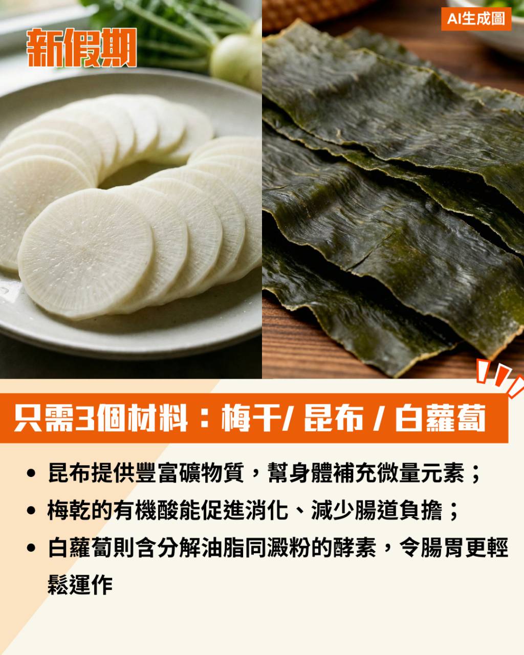 只需3個材料:梅干/ 昆布 / 白蘿蔔