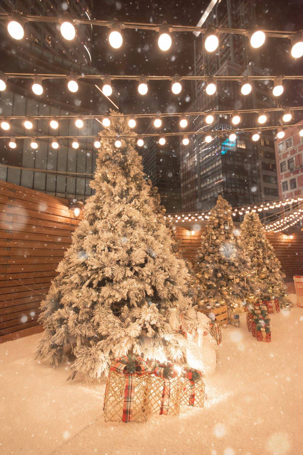 火土燒肉一向以融合露營風格與日式燒肉聞名,今個聖季更花盡心思,將餐廳大門外 的帳幕佈置成雪地營地,並把戶外酒吧區化身成「聖誕小屋飄雪樂園」。戶外區域不僅 有飄雪效果,更矗立著長達 4 米、閃閃發光的白色聖誕樹,以及數棵 3 米高的白色聖 誕樹,神還原聖誕樹小村莊的夢幻祭典。無論是一群好友、閨蜜相聚還是情侶約會, 這個節日限定佈置絕對是打卡首選,讓賓客盡情捕捉節日最美瞬間。