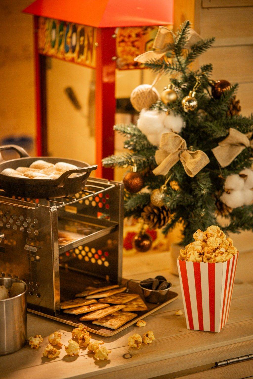 為增添節日歡樂氣氛,特別在戶外聖誕小屋提供多款露營風味小食,包括新登場的關 東煮和戶外燒肉。此外,餐廳更推出節日驚喜晚市時段,於室內用餐的賓客,只需消 費即可免費獲贈爆谷券一張,可到戶外聖誕小屋換取香甜爆谷,讓大家一邊感受飄雪 浪漫,一邊享受美味小食。