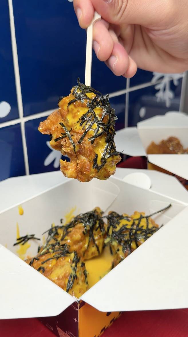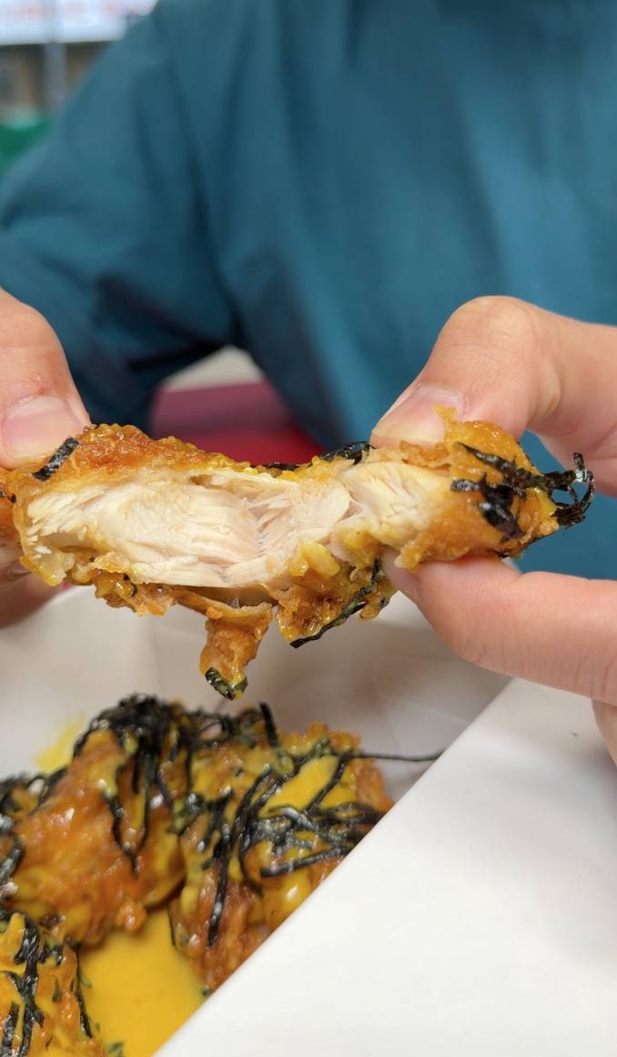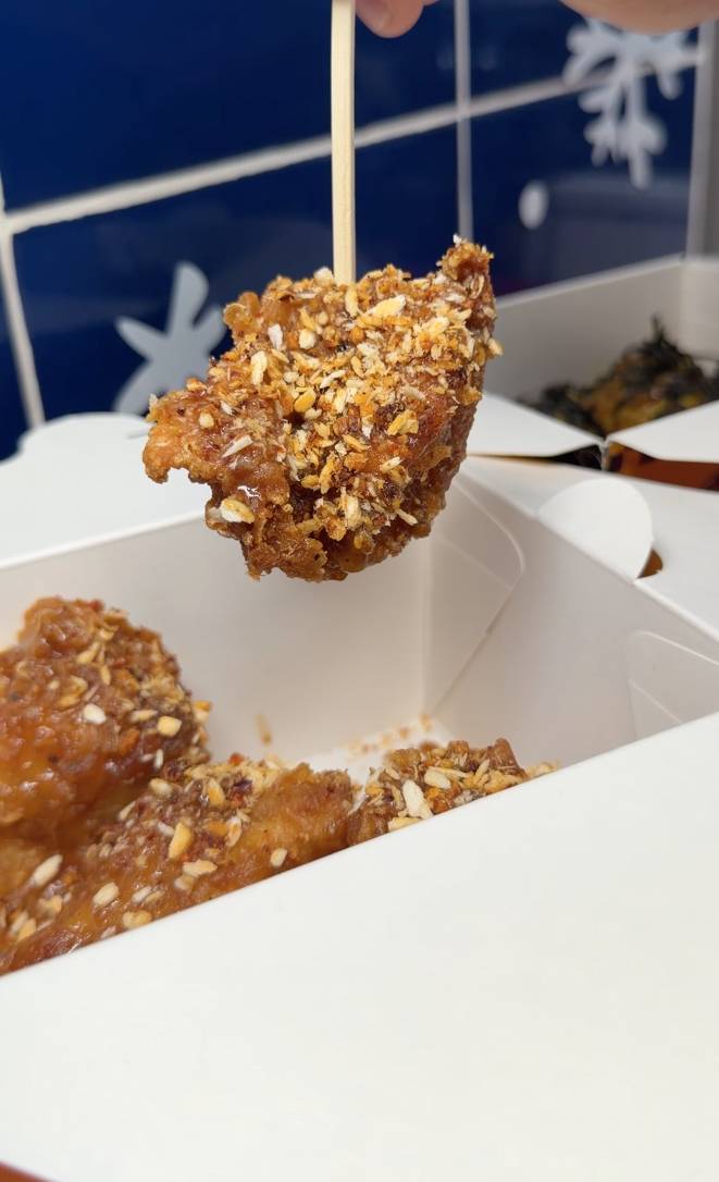 其中最具話題性的,非「擔擔麵味炸雞」莫屬。店方以花生醬、辣椒粉、芝麻及香料調配成濃稠醬汁,再均勻裹在炸雞表面,營造出類似擔擔麵的堅果香與辛香層次,甜、辣、香油脂交織,創作出前所未見的中式靈感炸雞風味。對於食慣韓式或美式炸雞的食客來說,這款口味可謂耳目一新。另一款炙燒柚子胡椒醬口味,淋上柚子胡椒醬後再炙燒,外皮焦脆!避風塘炸雞就最香口,外層脆卜卜 ,味道香辣,肉汁好juicy!現場仲有多款香口小食,好似扭扭薯條和拉絲芝士條,以後去旺角掃街又多個好選擇啦!