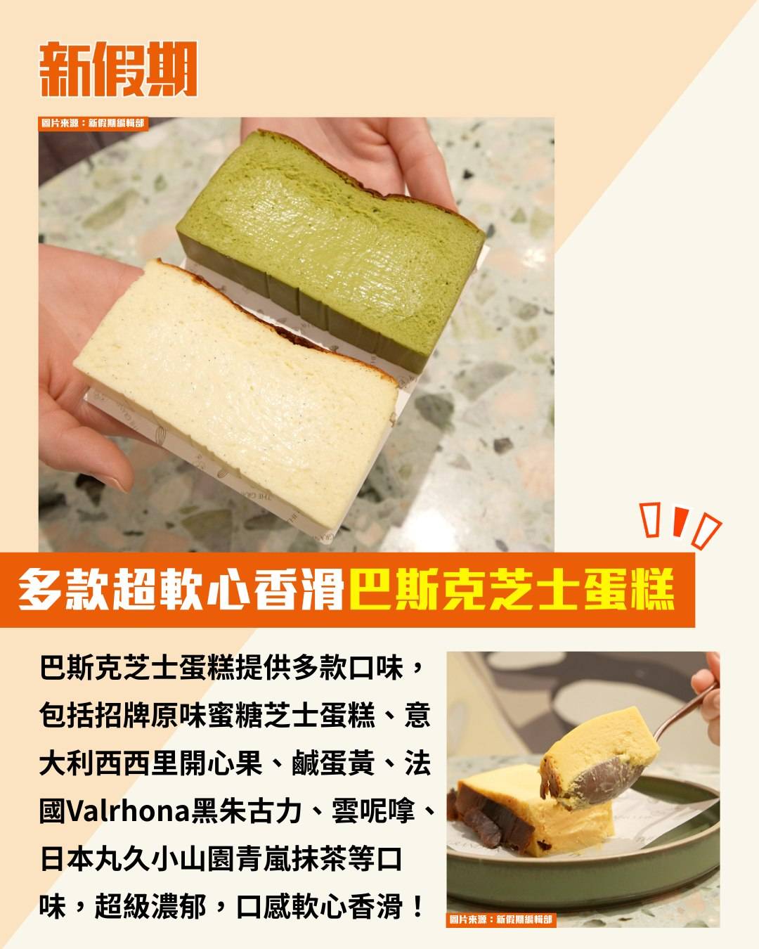 巴斯克芝士蛋糕提供多款口味,包括招牌原味蜜糖芝士蛋糕、意大利西西里開心果、鹹蛋黃、法國Valrhona黑朱古力、雲呢嗱、日本丸久小山園青嵐抹茶等口味,超級濃郁,口感軟心香滑!