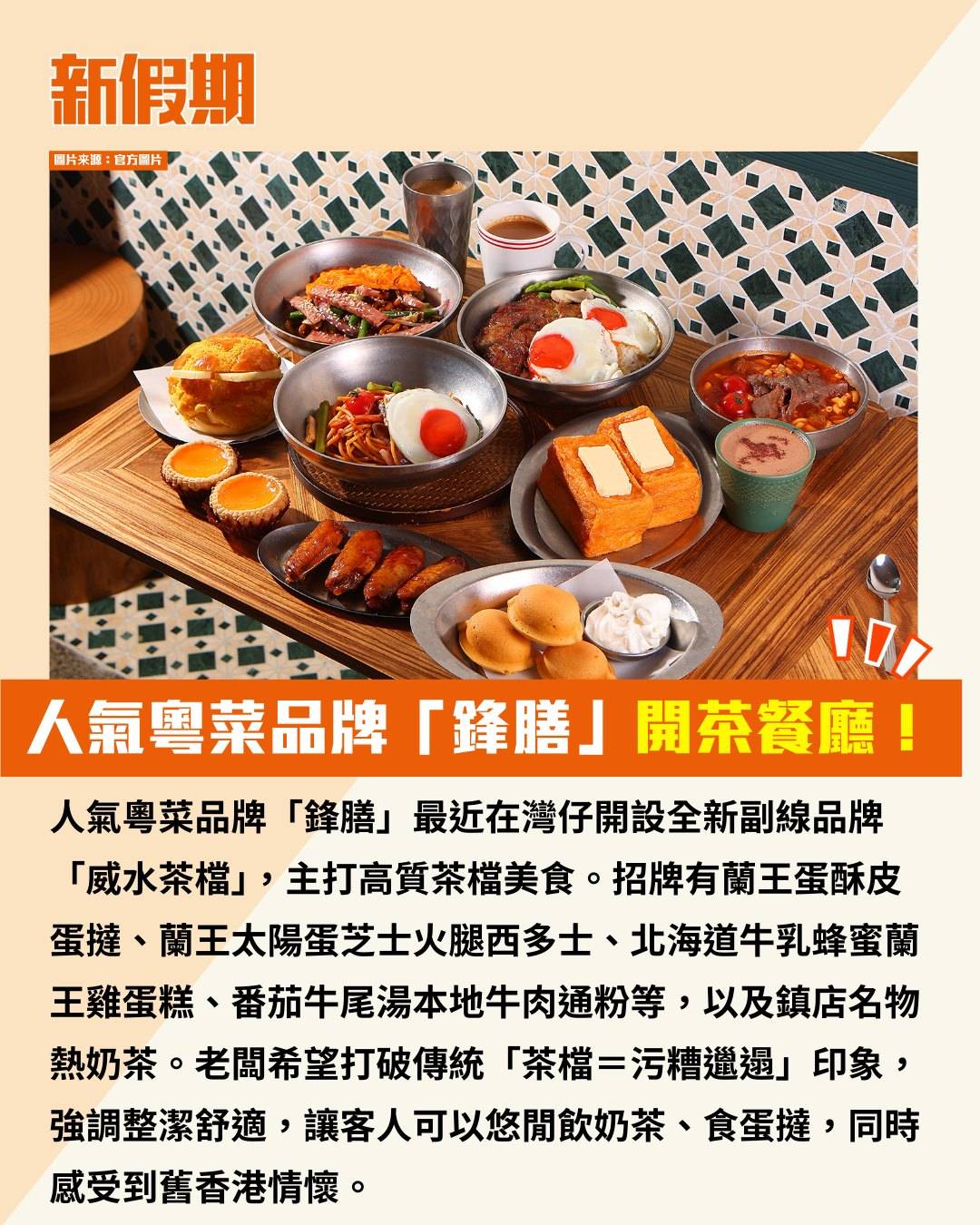 人氣粵菜品牌「鋒膳」開茶餐廳「威水茶檔」!