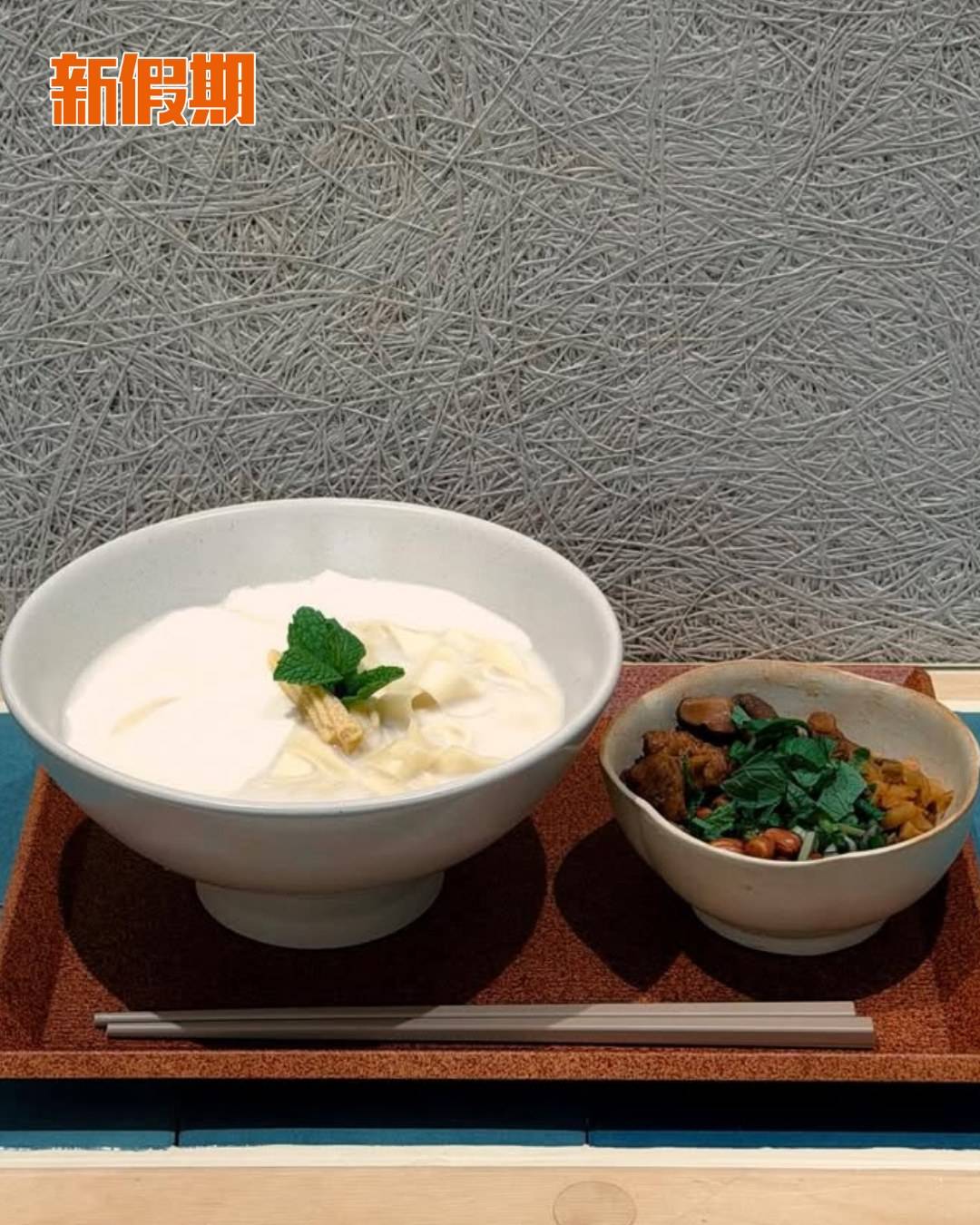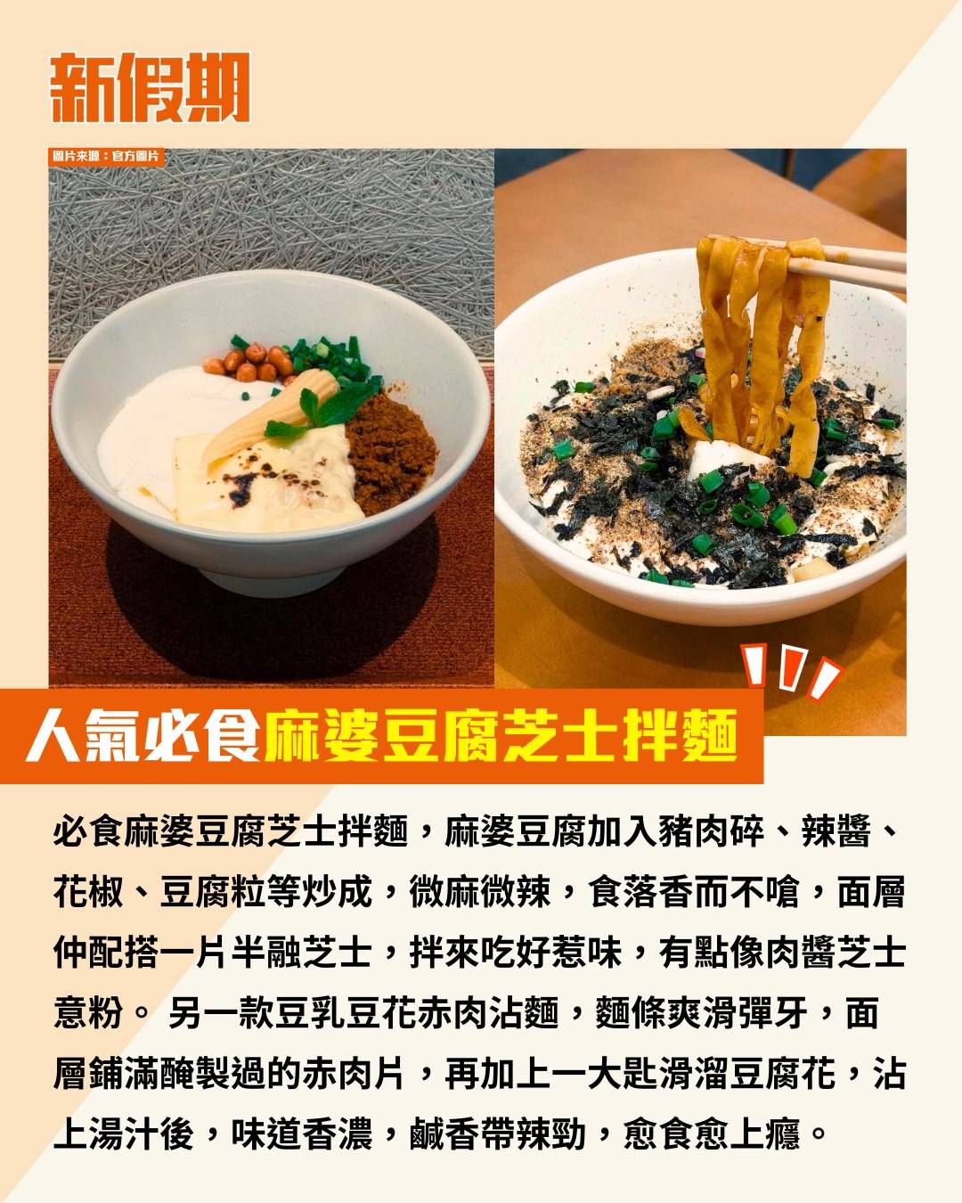 必食麻婆豆腐芝士拌麵,麻婆豆腐加入豬肉碎、辣醬、花椒、豆腐粒等炒成,微麻微辣,食落香而不嗆,面層仲配搭一片半融芝士,拌來吃好惹味,有點像肉醬芝士意粉。 另一款豆乳豆花赤肉沾麵,麵條爽滑彈牙,面層鋪滿醃製過的赤肉片,再加上一大匙滑溜豆腐花,沾上湯汁後,味道香濃,鹹香帶辣勁,愈食愈上癮。