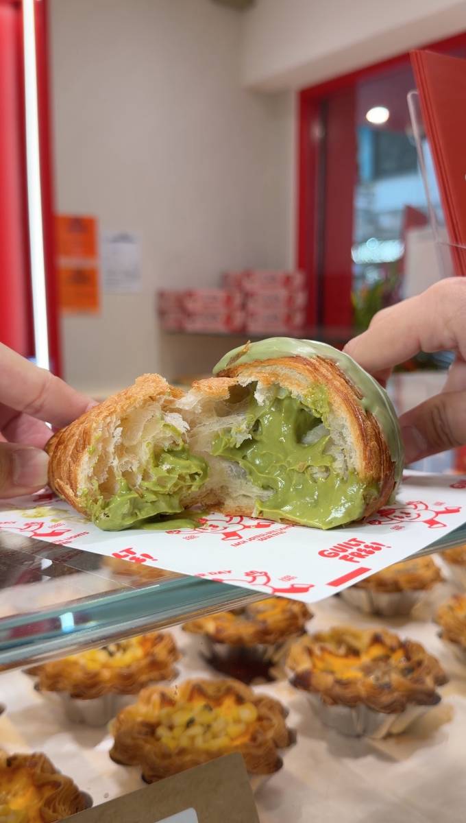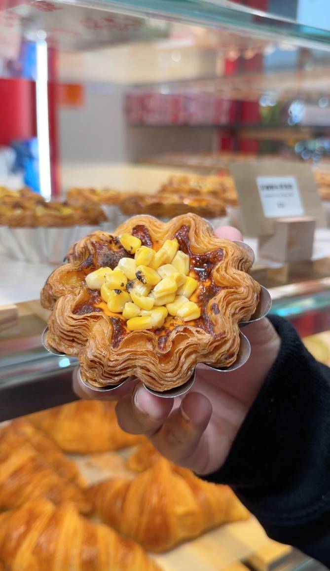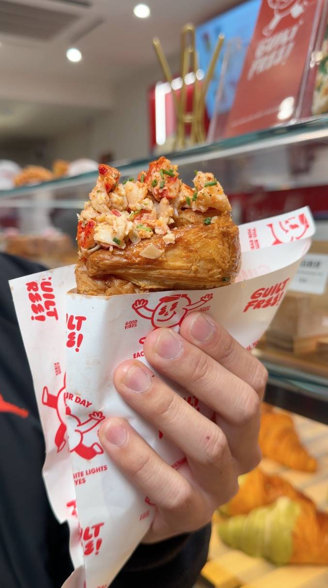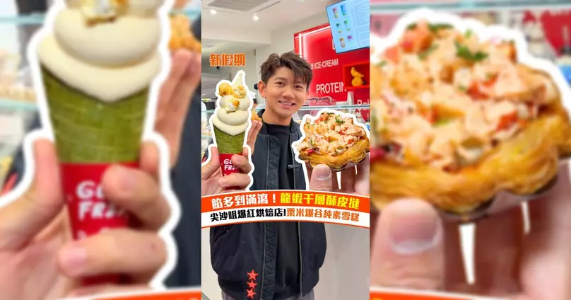 Guilt Free 【#今日食乜好】尖沙咀新開咗間烘焙小店,主打酥皮蛋撻、牛角包等烘焙美食,今次仲邀請到新假期BFF 楊聰 @iamonion__率先試食!招牌一定是龍蝦脆脆撻,面層鋪滿龍蝦肉,味道好香濃;忌廉粟米濃湯撻中間香滑流心,粟米味仲好濃郁!必試仲有粟米焦糖爆谷軟雪糕,用粟米水原漿整成,純素無蛋奶,做到平時雪糕的香滑,有陣陣粟米清甜味。現場仲有提供高蛋白乳酪飲品,其中牛油果高蛋白乳酪味道酸甜濃郁 ,仲好飽肚。舖頭仲做緊挑戰活動,舉起10KG鐵杯20-40秒,即免費送唔同嘢食,一齊嚟挑戰吓啦!