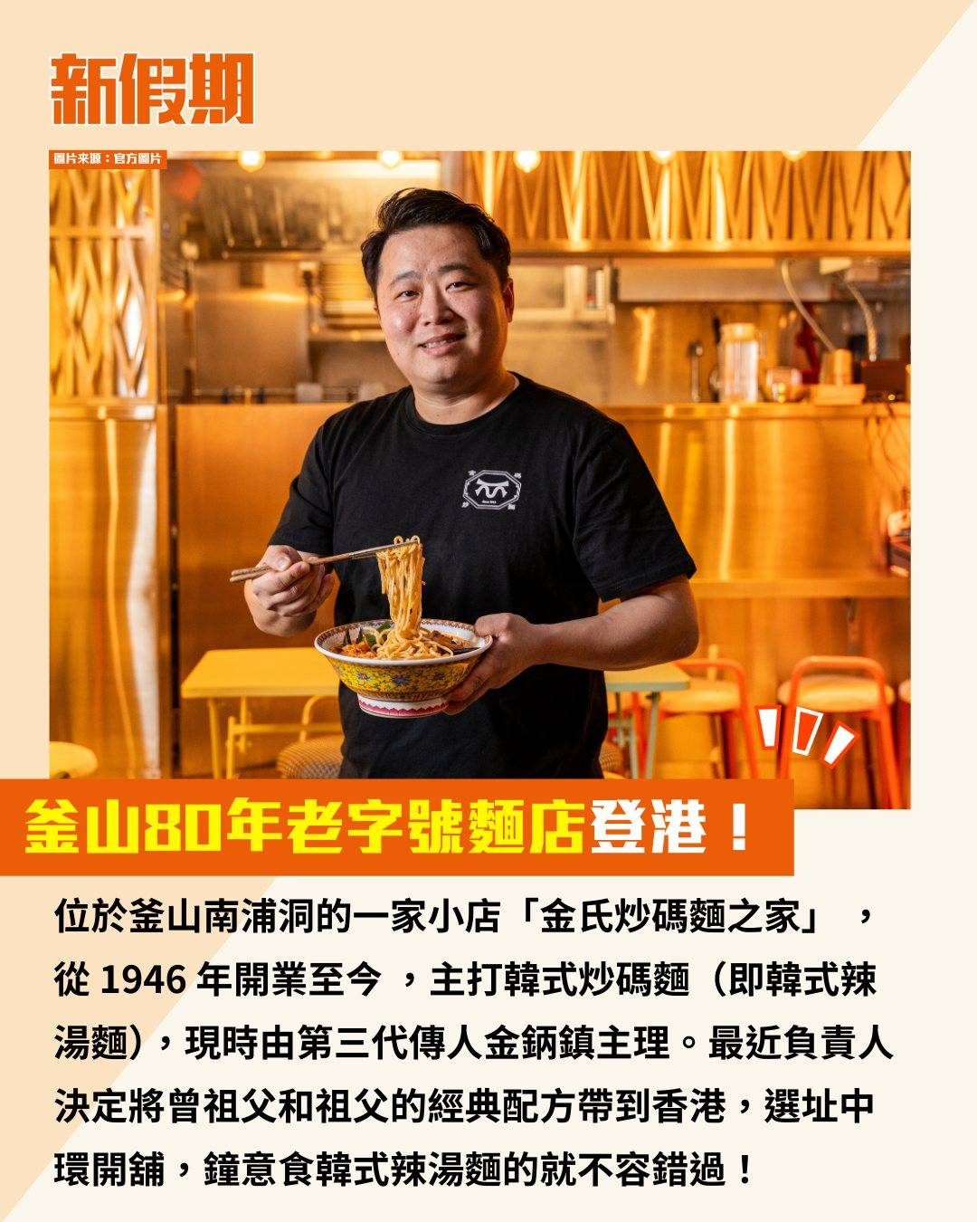 位於釜山南浦洞的一家小店「金氏炒碼麵之家」 ,從 1946 年開業至今 ,主打韓式炒碼麵(即韓式辣湯麵),現時由第三代傳人金鈵鎮主理。最近負責人決定將曾祖父和祖父的經典配方帶到香港,選址中環開舖,鐘意食韓式辣湯麵的就不容錯過!