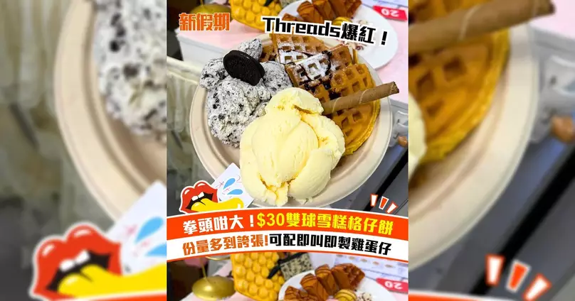 九龍灣$30雙球雪糕格仔餅/雞蛋仔!雪糕份量拳頭咁大