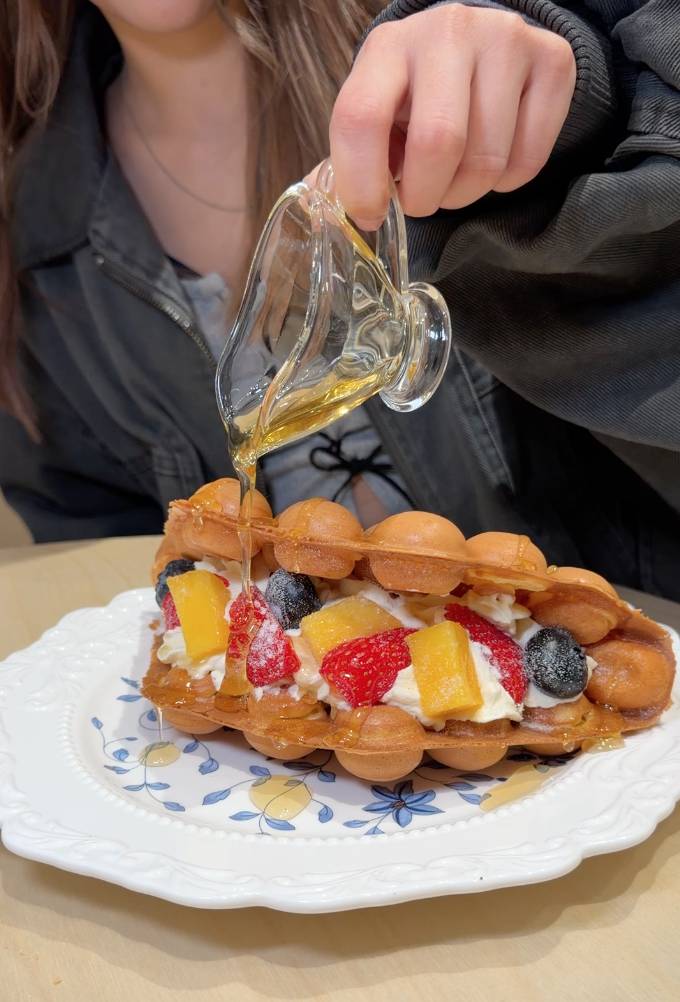 現場仲有多款特色甜品,最吸引是水果夾心雞蛋仔,將港式雞蛋仔升級,蛋仔中間夾入鮮果同忌廉,外層香脆,淋上糖漿,係幸福嘅味道!昭和風藍色奶凍走懷舊日系路線的奶凍甜品,以淡藍色做視覺重點,質感細滑,打卡十足!