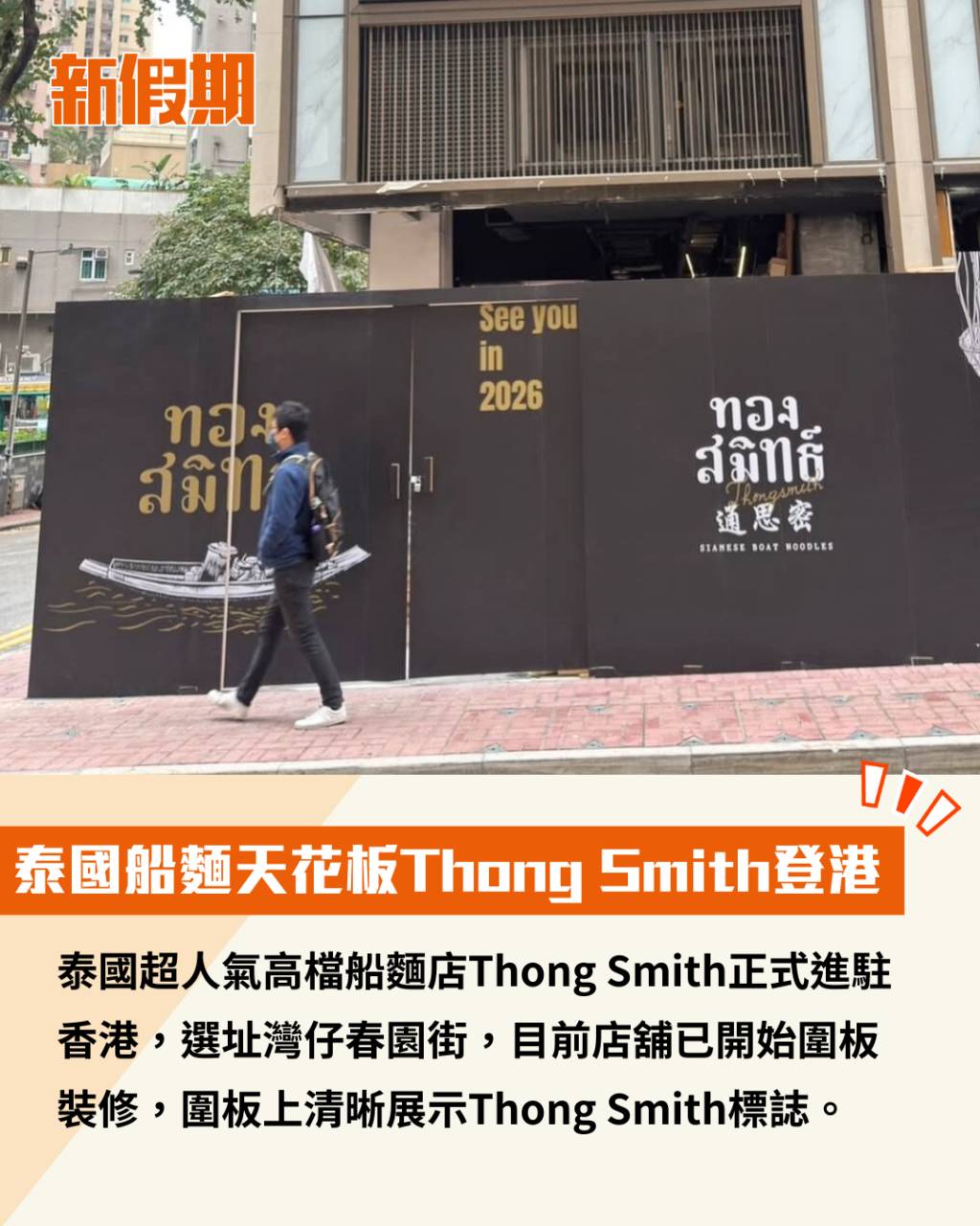 泰國超人氣高檔船麵店Thong Smith正式進駐香港,選址灣仔春園街,目前店舖已開始圍板裝修,圍板上清晰展示Thong Smith標誌。