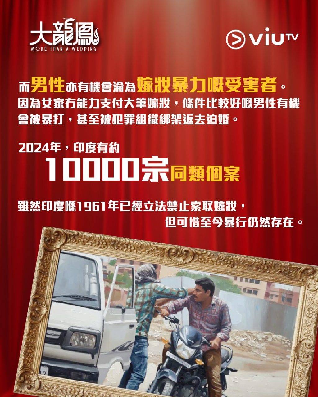 嫁妝暴力問題不僅影響女性,男性同樣有機會淪為受害者。因為女家無能力支付大筆嫁妝,條件較好的男性有機會被暴打,甚至被犯罪組織綁架迫婚。節目中提及「綁架階級較高的新郎」以提高女方身份的極端做法,2024年印度有約10,000宗同類個案。雖然印度在1961年已立法禁止索取嫁妝,但可惜至今暴行仍然存在。這種扭曲的婚嫁文化與根深蒂固的種姓制度密切相關,即使制度已廢除,文化影響依然深遠。