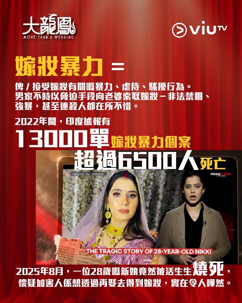 節目揭露印度婚禮背後的社會問題,由於許多人向私人財務公司借錢辦婚禮,更有窮人因未能還債而輕生收場。在印度婚禮傳統中,女方需要準備嫁妝和禮金,因為大部分女性婚後不會工作,嫁妝被視為預先交付給男方家庭的生活費。這個制度衍生出駭人聽聞的暴力事件,男家不時以脅迫手段向妻子索取嫁妝,包括非法禁錮、強暴,甚至殺人。2022年間,印度據報有13,000宗嫁妝暴力個案,超過65,500人死亡。2025年8月,一位28歲新娘竟然被活生生燒死,懷疑加害人想透過再娶獲得嫁妝,實在令人嘩然。