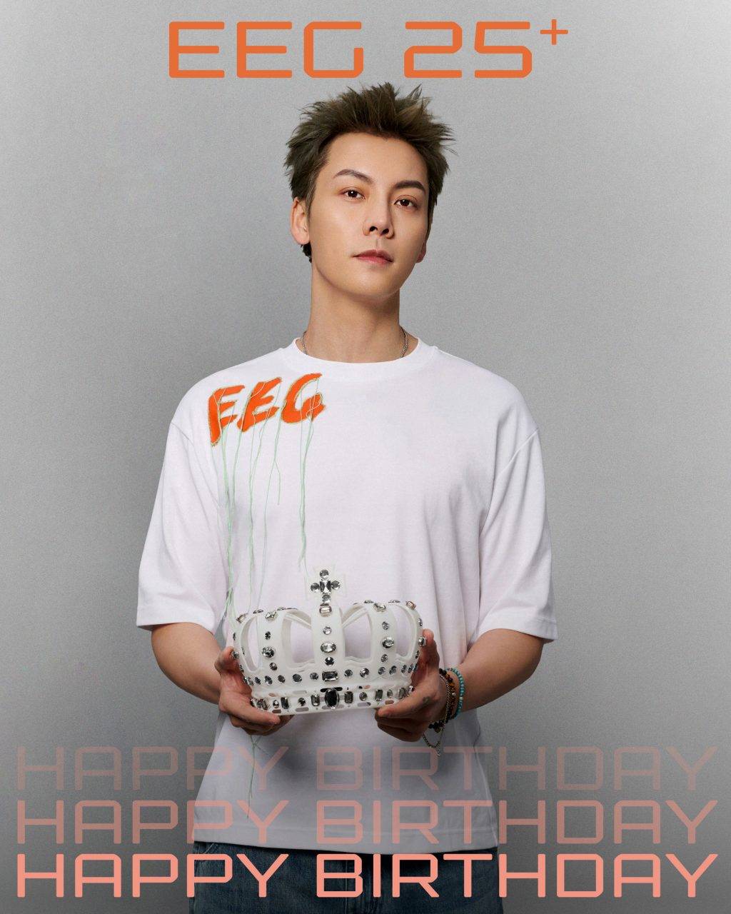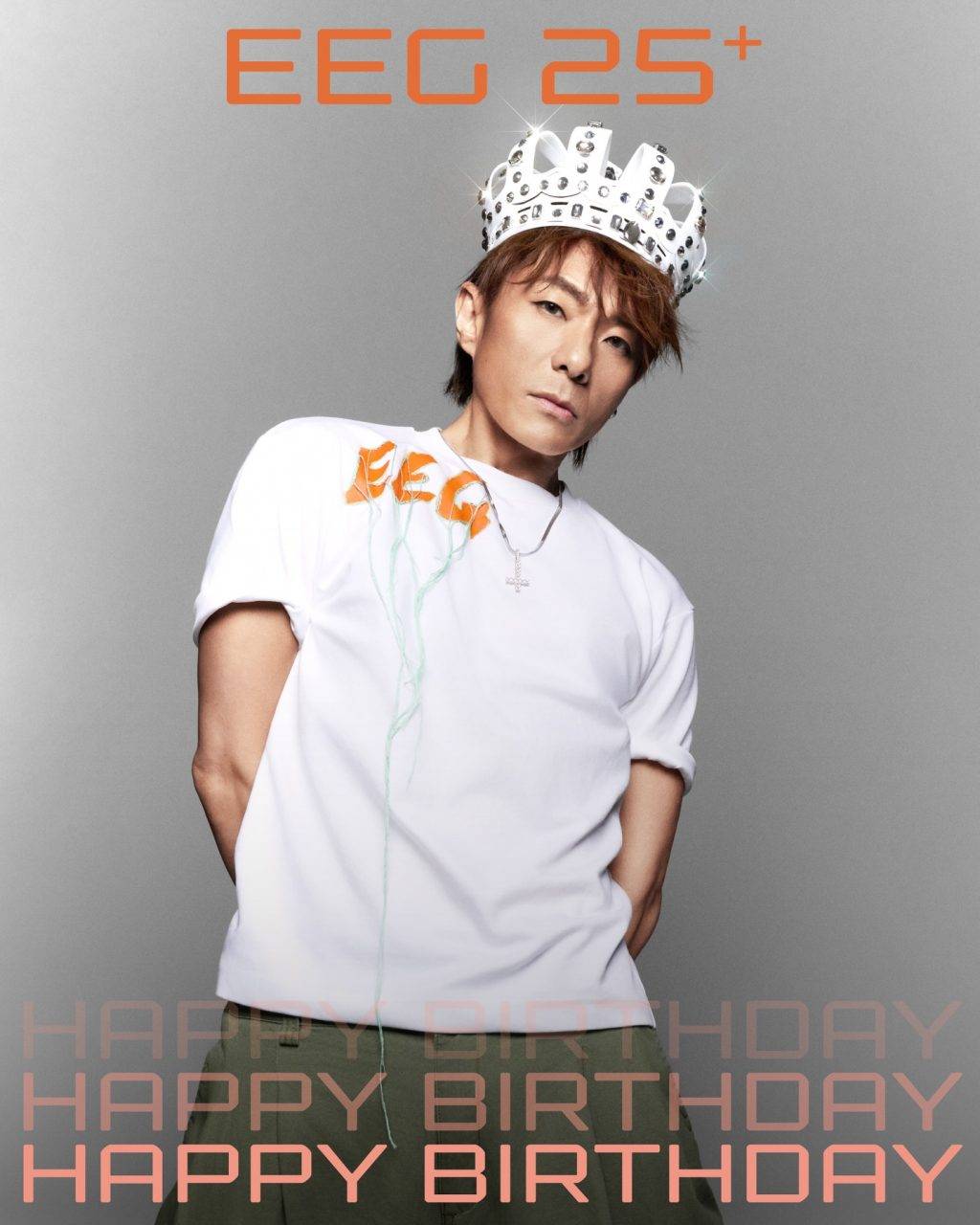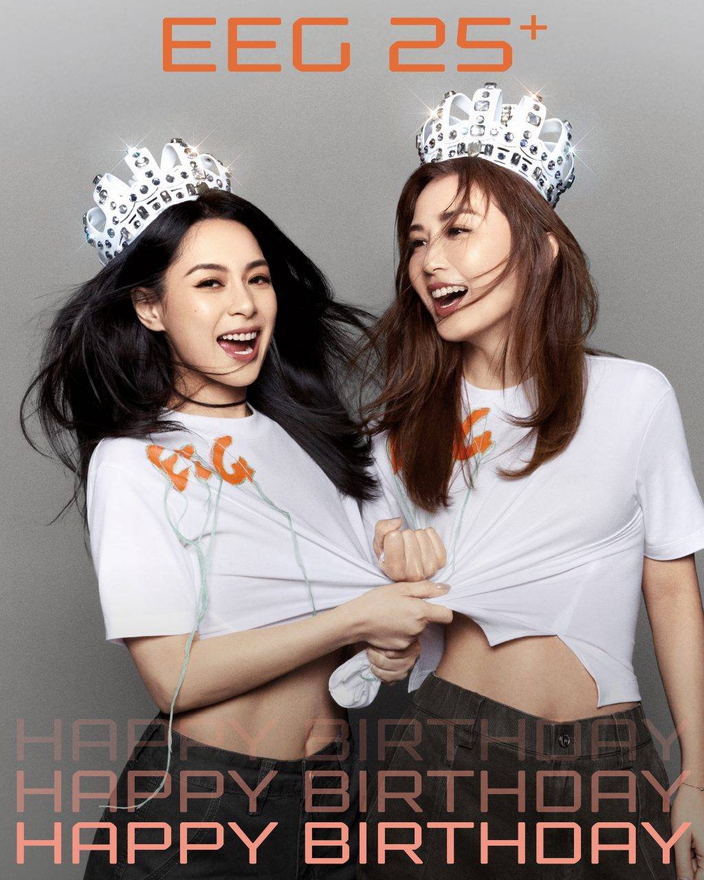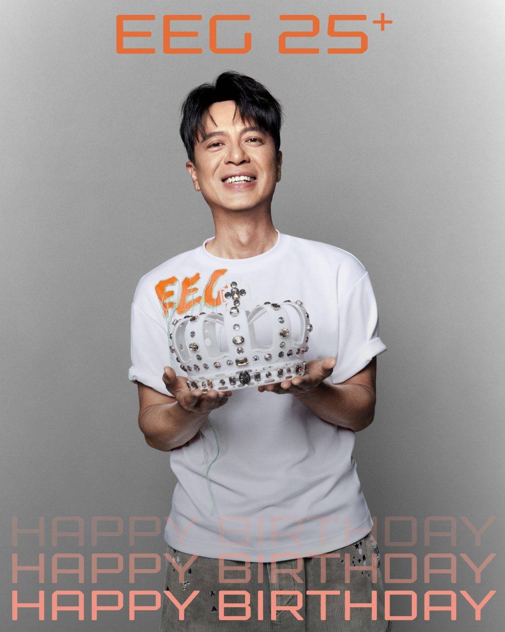 為配合【英皇娛樂25+ HAPPY BIRTHDAY慶典】,英皇特別邀請著名攝影師夏永康為旗下藝人拍攝全新照片,為原本由劉偉強、張叔平、王雙駿組成的黃金團隊再添一員。夏永康分享拍攝心得時表示:「感謝英皇娛樂的邀請,英皇旗下藝人陣容龐大,每一位都極具個人風格且專業。拍攝過程中數個動作,便能自然流露獨特魅力和個性。這次整體風格偏向簡約樸素,以人出發,無須繁複的背景,只配上皇冠頭飾。除了象徵英皇娛樂,也寓意每位藝人都憑藉努力與才華,為自己加冕。」而藝人穿著的T恤則由演唱會美術總監張叔平操刀設計,橙色字體代表活力,綠色流蘇代表延續,展現品牌深厚影響力。