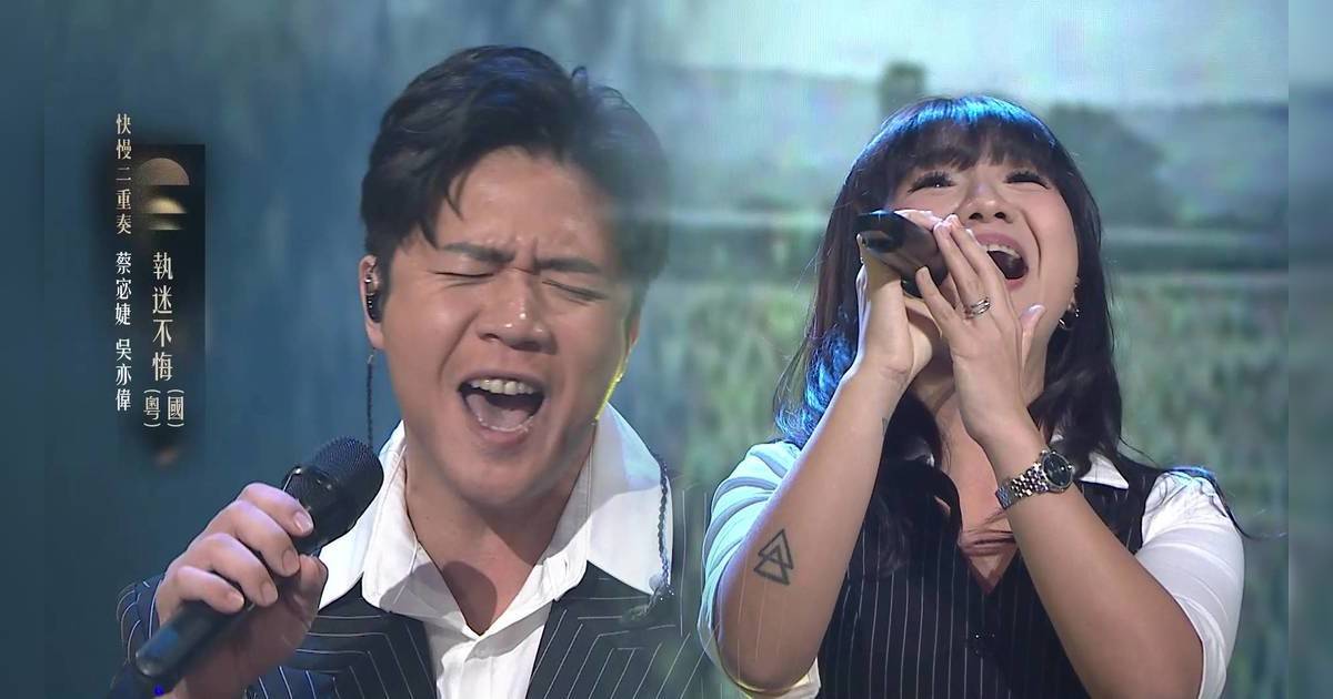 雖然練習過程充滿火藥味,但兩位唱將在台上依然施展渾身解數,完美演繹《執迷不悔》。評審肥媽聽畢演出後,僅以「鮑魚雞煲」四字形容,比喻二人是頂級食材的結合,充滿層次。谷婭溦則大讚宓婕的中低音色非常厚實。然而,向來要求高的評審周國豐卻指出,演繹此曲最難的是表達出「態度」,究竟這對火爆組合的「態度」能否成功打動他呢?