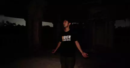 MCM為更深入感受此處的靈體,決定獨自留在Ballroom內靜坐。MCM出現異樣,一開始不停點頭,之後便站起來不停以圓圈自轉,更不受控制地四處走動。(圖片來源:ViuTV)