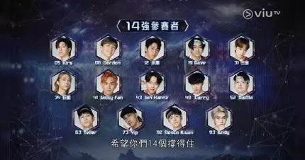 | 編號 | 中文名 | 英文名 | 年齡 | 職業 | 強項 | |——|——–|——–|——|——|——| | 5 | 郭民鋒 | Kirs | 20 | 音樂製作系學生 | 唱歌 | | 6 | 張肇維 | Gordon | 22 | 營養學學生 | 唱歌、跳舞、打泰拳 | | 12 | 陳曉希 | 小雞 | 17 | 中五學生 | 唱歌 | | 19 | 黃日禧 | Dave | 24 | 會計系學生 | 唱歌 | | 31 | 榮柏鑫 | 三金 | 21 | 電影系學生 | 唱歌 | | 34 | 丘藍 | 丘藍 | 26 | 自由工作者 | 唱歌 | | 41 | 范卓賢 | Jacky Fan | 25 | 歌手 | 唱歌 | | 43 | 陳瑨羲 | Ian Hannz | 21 | 舞者、駐唱歌手、學生 | 跳舞、唱歌 | | 49 | 杜曦駿 | Larry | 25 | Popping舞者、自由工作者 | 跳舞 | | 52 | 李學偉 | DaiMa | 24 | Hip Hop舞者、自由工作者 | Hip Hop舞 | | 63 | 王偉俊 | Teller | 27 | Beatboxer、樂器銷售員 | Rap | | 73 | 陳頴業 | Yip | 40 | 街舞舞者、戲場演出、藝術教育 | 跳舞(街舞) | | 92 | 關曉隆 | Bosco Kwan | 17 | 中六學生 | 跳舞(K-pop、Hip Hop) | | 93 | 陳展駿 | Andy | 18 | 中六學生 | 唱歌 |