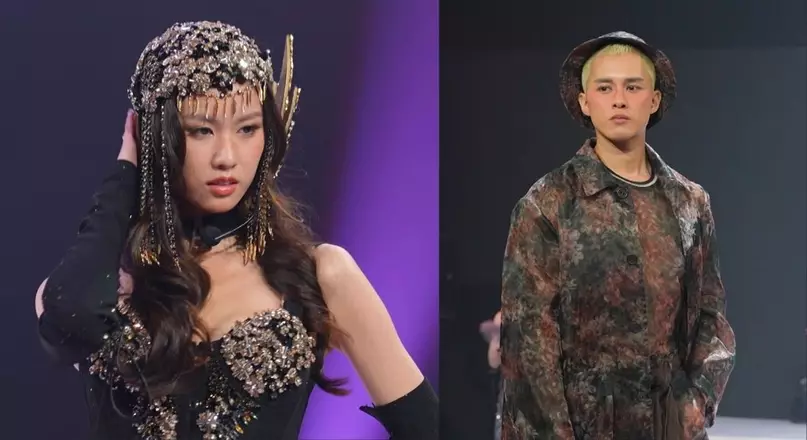 另一邊廂,設計師羅巧蒨則抽到最多的16碼布,與模特兒梁凱晴聯手打造「Bow Romance」造型,形成強烈對比。羅巧蒨巧妙地將大量布料轉化為充滿層次感的粉紅色少女風短裙,並以大型蝴蝶結作點綴,突顯梁凱晴的修長美腿。這個甜美設計深得評審歡心,樂基兒大讚:「你咁多 Texture 同 layer 可以整到短裙好 creative,I really like pink。」連視帝陳豪亦表示支持:「咁多碼布要將佢轉成短裙,我覺得係一個好好嘅設計,白色同埋粉紅色出嚟嘅效果好好睇。」