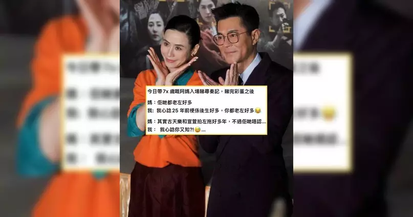 一名網民在Threads分享與70多歲母親觀看《尋秦記》電影版的趣事,原本以為只是普通的親子觀影時光,豈料伯母看完彩蛋後感嘆主角們「佢哋都老左好多」,隨即語出驚人表示「其實古天樂和宣萱拍左拖好多年,不過佢哋唔認」。該網民當時心裡無奈反問「我心諗你又知?!😅」,並將這段對話分享到社交平台,引發網民熱烈討論,不少人笑言「伯母真係挑通眼眉👍🏻👍🏻😄」、「係堅定嘅CP粉」。