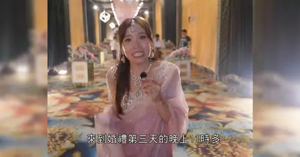 印度婚禮的儀式感絕對令人咋舌!翌日的頌經儀式長達3小時,Michelle在烈日下與新郎家人載歌載舞,事後她坦言體力透支:「整個早上已經全身濕透,拍手也拍得發痛。」晚上的「Jaago」傳統儀式更是通宵達旦,女長輩們頂著陶罐,帶領隊伍逐家逐戶敲門邀請鄰里參與婚禮,沿途勁歌熱舞。Michelle換上亮麗的銀色禮服參與其中,親身感受印度人對跳舞的熱誠和對賓客的熱情,連新郎爸爸都「支持唔住」,可見這場歌舞馬拉松的激烈程度!