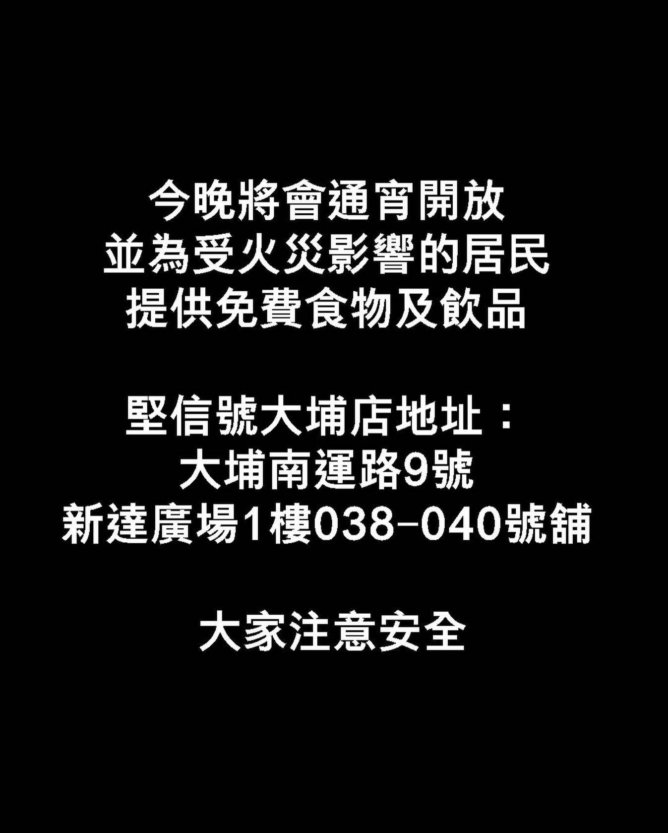 宏福苑火災 藝人救災 江若琳蕭潤邦餐廳通宵營業送暖(圖片來源:ig@elannek930)