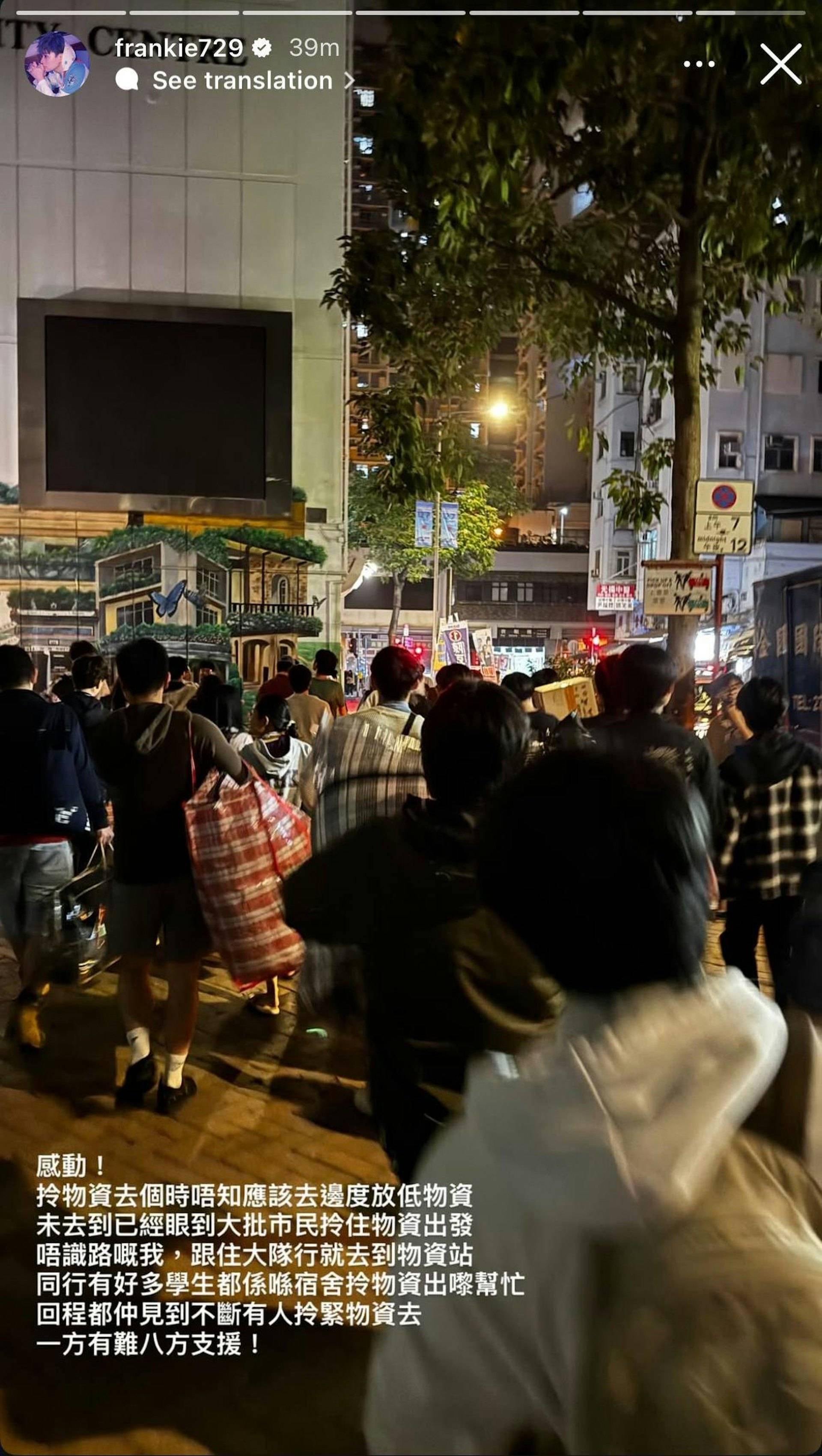 宏福苑火災 藝人救災 親赴現場運送物資(圖片來源:ig@frankie729)