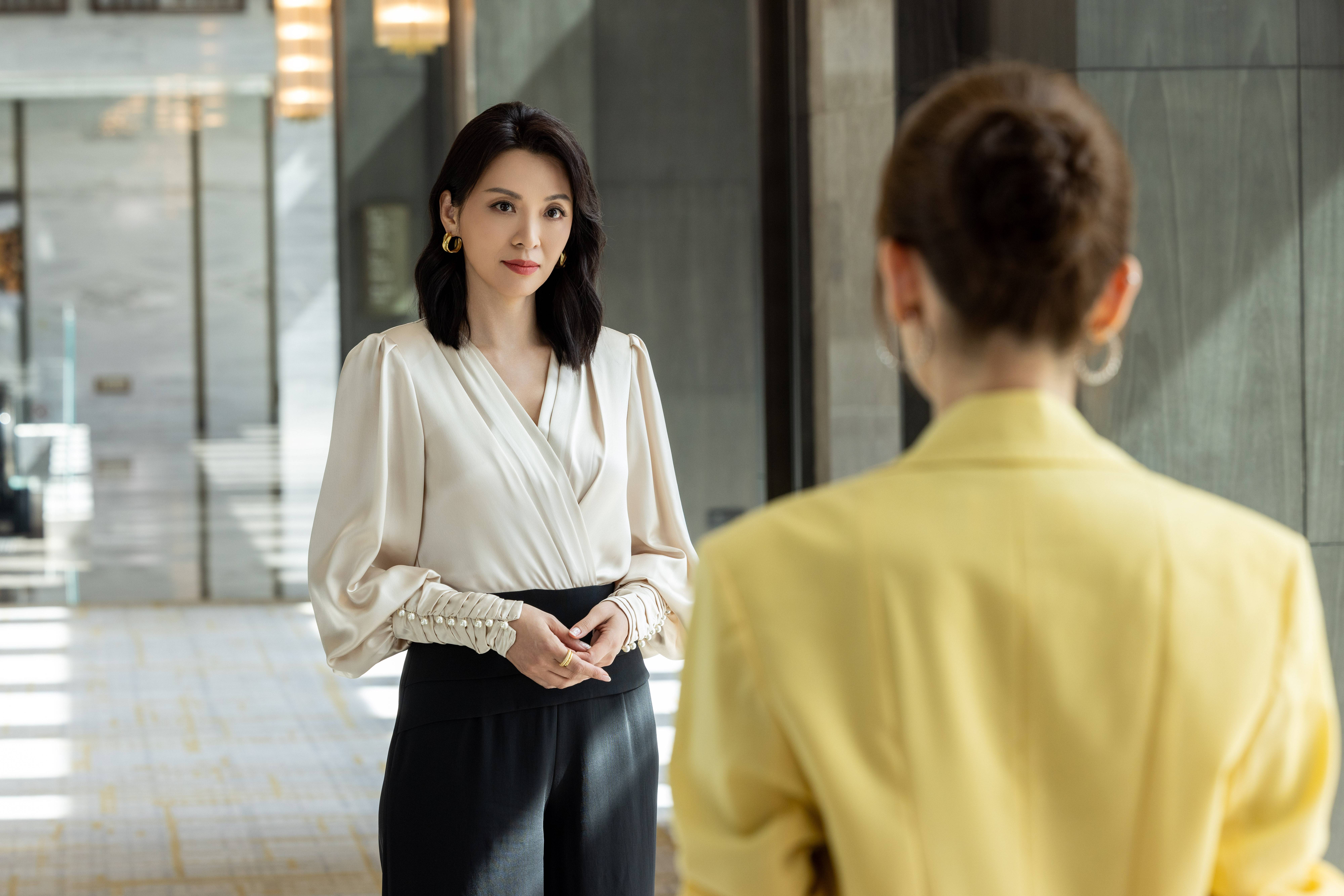 在昨晚播出的第六集,劇情焦點落在陳煒飾演的醫療公司集團主席方欣,以新董事身份空降明塱集團,直接向宣萱飾演的董一妍宣戰。陳煒身穿湖水藍露腰套裝,配上鑽石耳環,氣場全開。她一見宣萱便瞄準其手上的「藍月亮」戒指,先是揚眉拋下一句:「隻戒指好靚」,再進逼道:「你知唔知我隻遊艇叫咩,藍月亮!同你戒指上面粒石一樣」,當宣萱回應「都係主席送」時,陳煒即以一句「不過早過你好多」完美KO對手,簡單幾句對白已將角色之間的張力推至頂點。雖然是硬碰硬的場面,但兩人未有全程繃緊,反而偶爾展露詭魅笑容,令戲味更濃,充滿層次感。