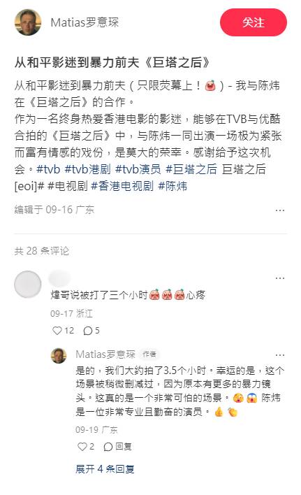 《巨塔之后》陳煒爆驚人家暴戲|為拍15秒慘遭外籍男狂毆3小時 網民睇到勁心痛!