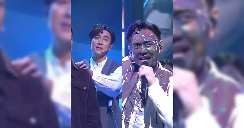 台慶現場氣氛本應溫馨感人,豈料變成大型「炒車」現場。譚俊彥演繹《葡萄成熟時》時音準完全失控,連番走音令觀眾震驚。張振朗演繹《我》時不單用顏料撥向林俊其,還與對方自行「照頭淋」,兩人同時慘變花面貓,且搭膊頭互勉,張振朗叫林俊其做「王浩信」,而林俊其則叫張振朗做「張智霖」。何晉樂、梁超儀、鄧伊婷及鍾晴等後輩同樣表現失準,整個環節變成「五音不全大雜燴」。