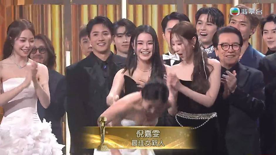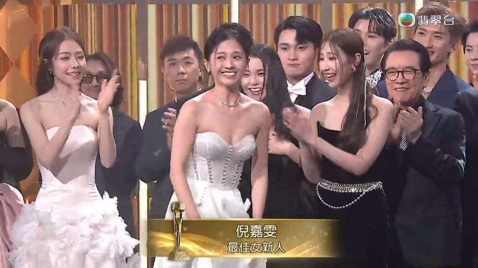 倪嘉雯激動表示:「我入行5年就遇到好多對我好好嘅前輩,感謝珍姐,令我由0到依家得獎,多謝樂小姐,俾咁多好嘅經理人,多謝佳導,多謝man姐,係一個好好嘅前輩,逐個字教我咁演,多謝曾生!」