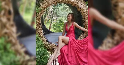朱智賢昨日在社交網分享峇里島度假照片,相中她身穿桃紅色連身裙,超低V的剪裁完美展現傲人身材曲線。她更大膽把裙子掀起展示修長美腿,配合綠油油的自然景色背景,視覺效果極為震撼。朱朱在高空吊橋上奔跑的畫面充滿動感,又在鞦韆上盪來盪去享受刺激,每個角度都展現出她的完美身段。